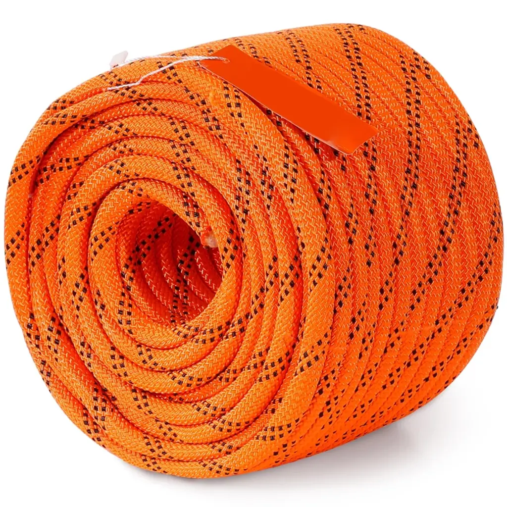 Vevor Dual-weave Polyester Cord, 1/2 Inch X 220 Feet, 48-strand, 8000 Lbs Tensile Strength, Multi-use Outdoor Rope, Orange/black