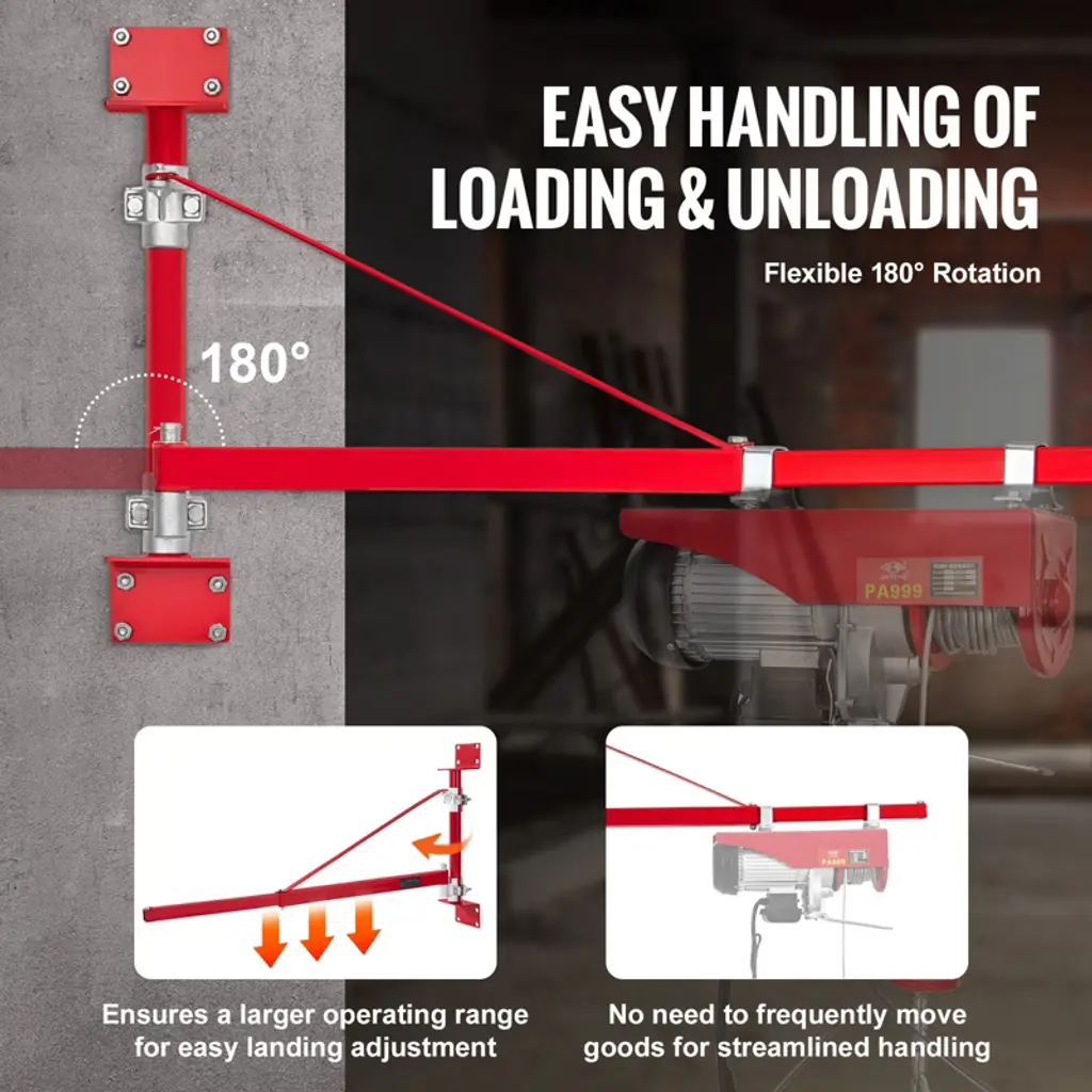Vevor Electric Hoist Support Arm, 660 Lbs Max Load Capacity, Electric Hoist Holder Swing Arm With Pole, Steel Hoist Frame, 180° Swivel Scaffold