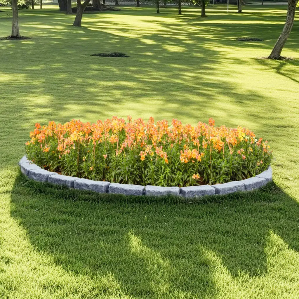 Feature: Realistic Stone Texture: Our stone landscape edgings feature a lifelike stone texture design. The raised surface patterns add depth and dimension to your outdoor spaces. Each piece measures 1180x95x57mm/46.46x3.74x2.24in, making them perfect for enhancing pool edges, garden beds, and pathways. These lawn edging provide a clean, refined look for both large and small spaces. Versatile Landscape Design: Ideal for any outdoor layout, these cobble stone edging offer a flexible application. They are ideal for creating elegant garden boundaries, separating lawns and pathways, or enhancing safety around pools. The modular design allows for seamless straight lines or creative curves, enabling you to realize your landscape vision. Easy Installation: The sturdy anchoring system enables DIY installation, while the interlocking design makes setup quick and hassle-free. The 12 included solid ground stakes to ensure a secure placement in all soil types, even under outdoor conditions, guaranteeing stability. Built to Withstand the Outdoors: Made from high-quality PE plastic using rotational molding, the fake rock edging for flowerbed are resistant to fading, rust, and corrosion. The textured surface mimics natural stone, while offering excellent protection against rain, snow, and sunlight rays. The hollowed-out bottom shell prevents sinking into soft soil. Low Maintenance: The lightweight structure ensures easy handling without compromising strength. Simply rinse with water to maintain its original appearance throughout the year. Despite its realistic stone-like appearance, each brick weighs just 1 kg (2.2 lbs), making them easy to move and install without heavy lifting. Package Content 12 x φ0.32 x 1.18 in anchoring spikes 1 x User Manual