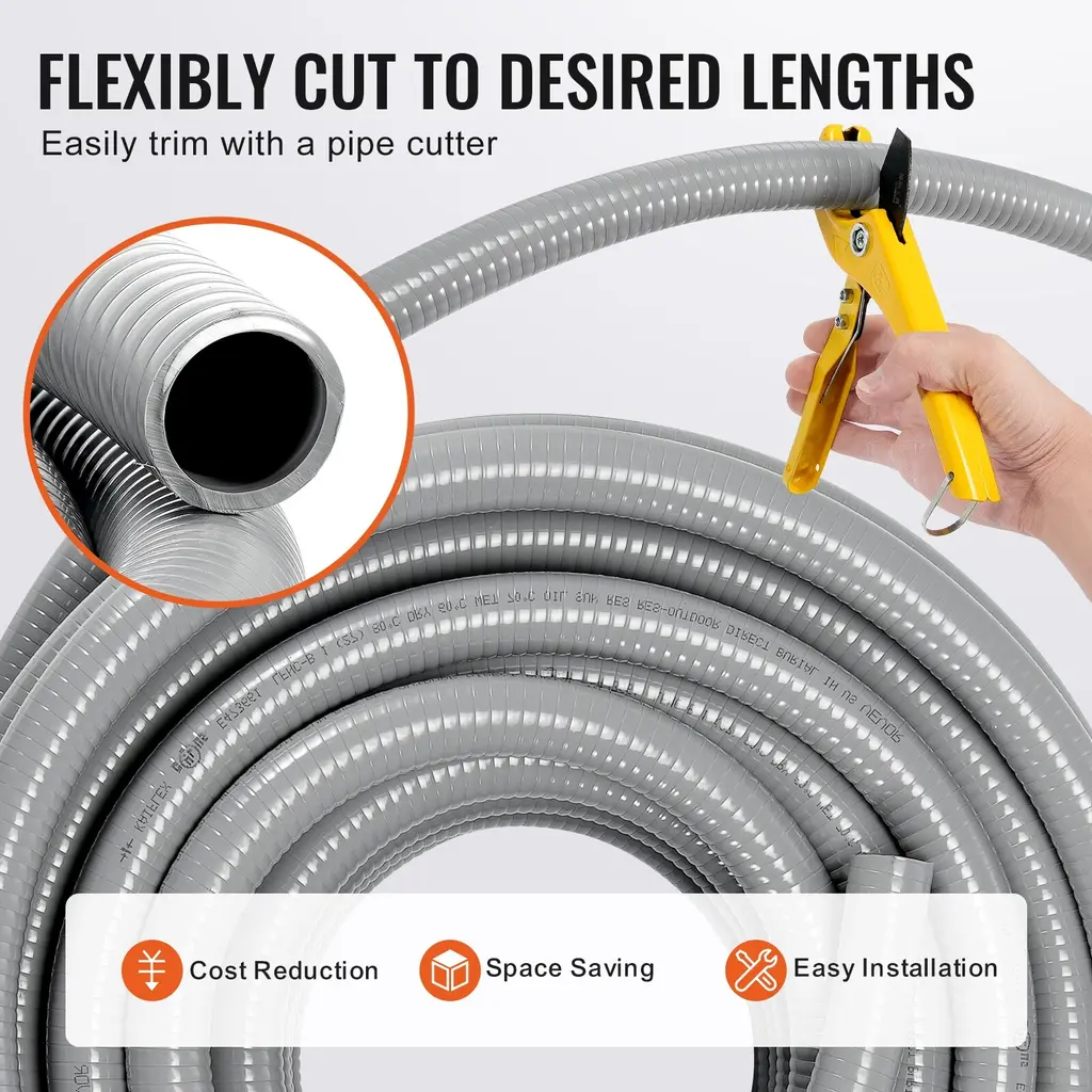 Vevor Flexible Electrical Conduit,100 Ft,for Air Conditioning Motor Controller Pump - 1/2inch - 1/2inch