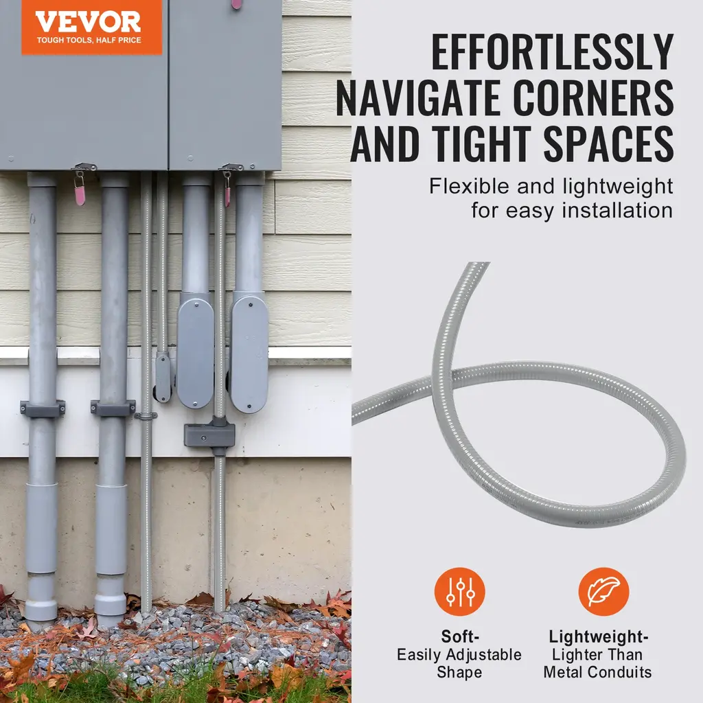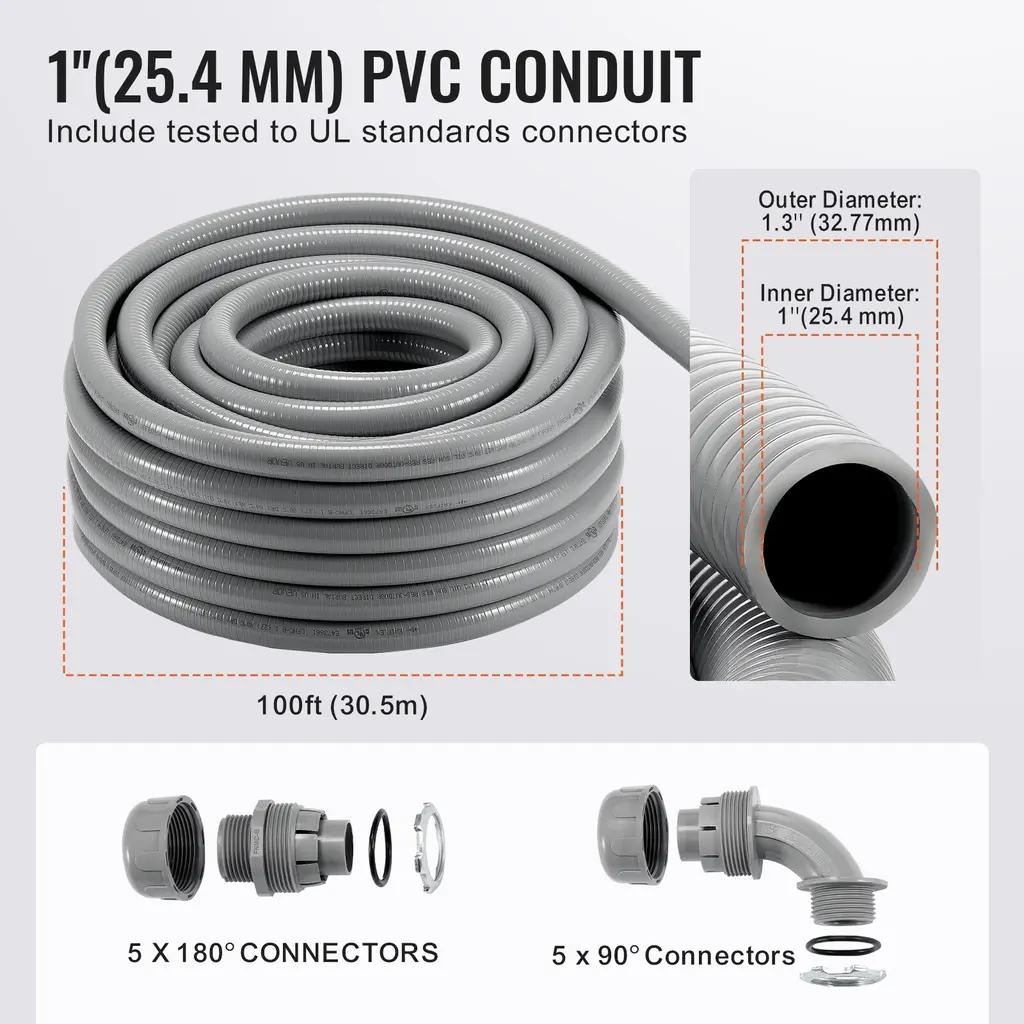 Vevor Flexible Electrical Conduit,100 Ft,for Air Conditioning Motor Controller Pump - 1Inch - 1Inch