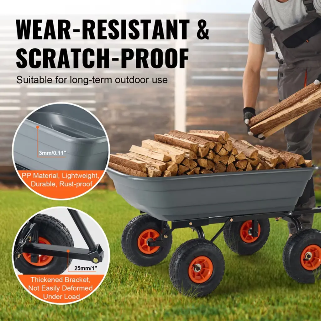Vevor Garden Cart, Durable Poly Dump Cart With Simple Assembly Steel Framework, Versatile Dump Cart, 600 Lbs Load Capacity, 10 Inch Wheels