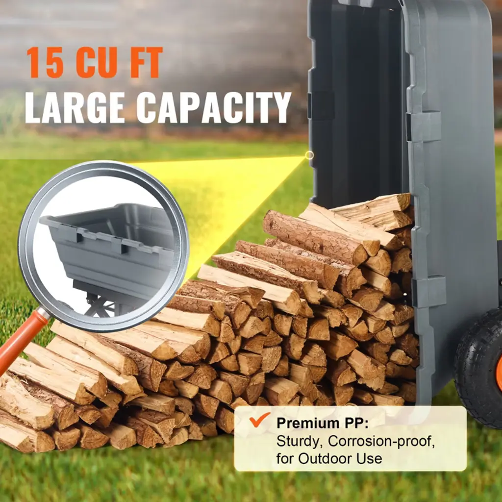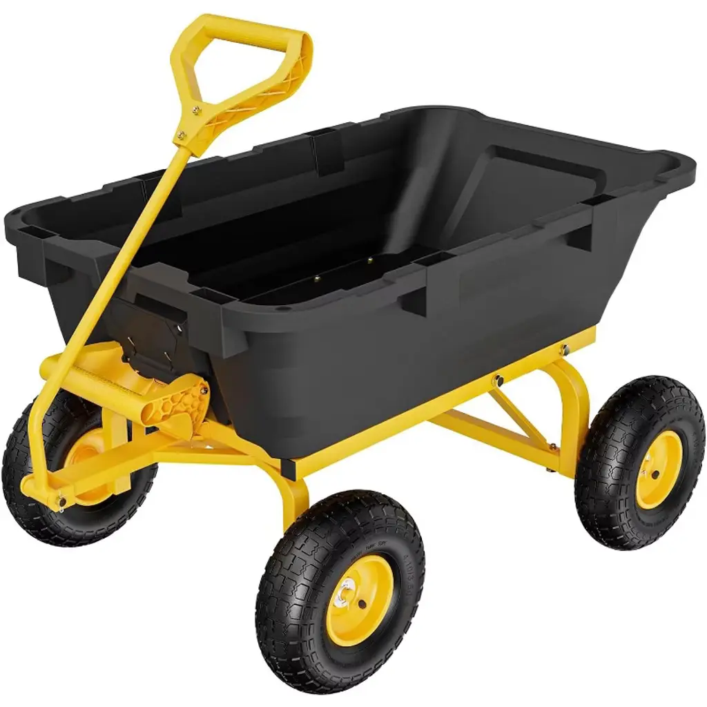 Vevor Garden Cart, Durable Poly Dump Cart With Simple Assembly Steel Structure, Handy Wheelbarrow With 1500 Lbs Load Capacity, 13 Inch Wheels