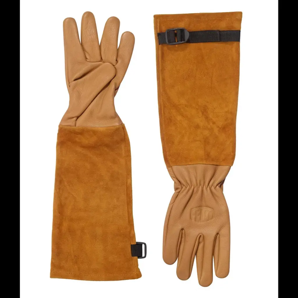 Feature: Durable Material: Made with lambskin and cowhide, the garden gloves offers a soft, snug fit for the palms and flexible, controlled fingertips. The wear-resistant gloves protect against stones, branches, and other high-wear situations, providing excellent puncture resistance for heavy gardening tasks like weeding and pruning. Extended Arm Protection: With a 17.5-inch length, these gardening gloves protect the forearms from scratches caused by rose thorns, brambles, and other plants. The extended coverage also keeps mud from staining the cuffs, ensuring a cleaner, secure pruning and cleanup experience. Secure and Slip-Resistant: The long sleeve gloves features adjustable drawstring, combined with the elastic wrist cuff, ensures a snug fit for different arm sizes. It prevents the rose pruning gloves from slipping off while also keeping debris and insects out of the sleeves, offering comfort and protection for extended use. Versatile and Unisex: The M-size thorn-proof rose gloves fit most men and women, ideal for a variety of tasks. Whether it's trimming thorny trees, clearing weeds, or doing heavy outdoor work like chopping wood or sweeping, these gloves meet the needs of home and outdoor activities. Gardening Present: The leather cactus gloves in yellow-orange color combine functionality and aesthetic appeal. They are a practical and thoughtful present or parents, gardeners, neighbors, gardening enthusiasts, or as a thoughtful holiday surprise. Package Content: 1 Pair x Garden Gloves 1 x Desiccant