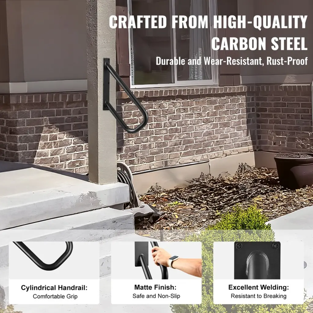 Vevor Handrails For Outdoor Steps, 18.9" Length 1.3"pipe Wall Mount Safety Railings For 1-2 Steps, Stair Handrail With Matte Black Finished