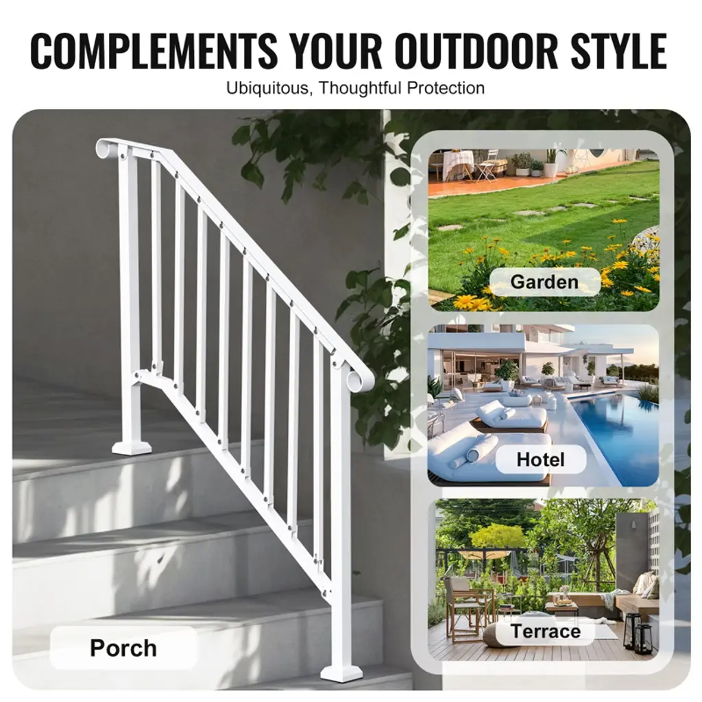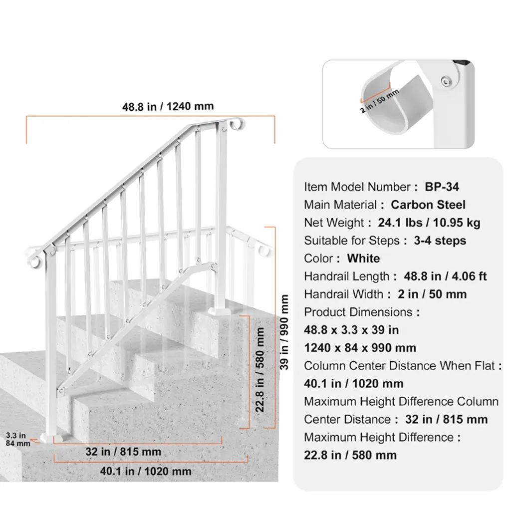 Vevor Handrails For Outdoor Steps, 3-4 Step Stair Hand Rail Kit, Transitional Carbon Steel Railings With Installation Kit, Stair Rails, White