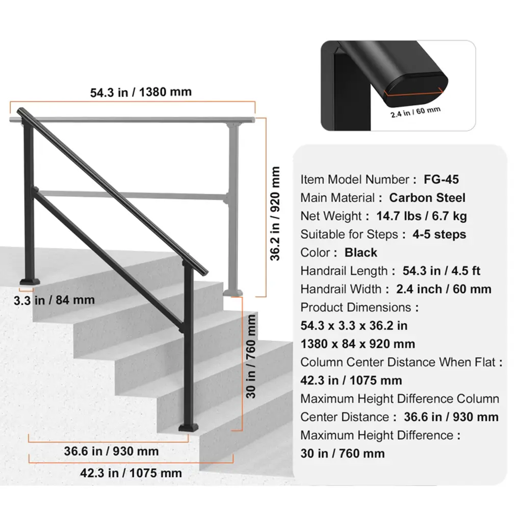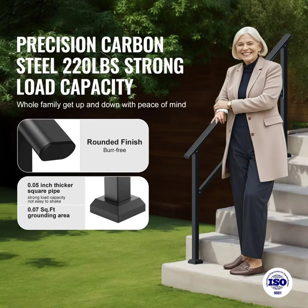 Vevor Handrails For Outdoor Steps, 4-5 Step Stair Hand Rail Kit, Transitional Carbon Steel Railings With Installation Kit,black
