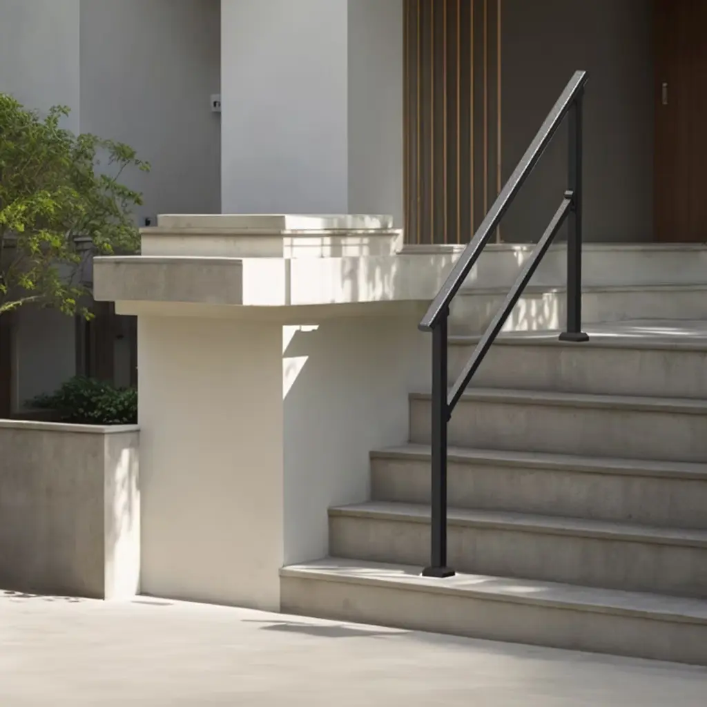 Feature: 220 lbs Robust Load Capacity: This stair handrail is built to last, offering reliable safety for both elderly individuals and children. The thickened grip ensures comfort and security, making it easy for everyone, including pregnant women and the elderly, to use confidently. IMPORTANT TIPS:Before purchasing, please measure the maximum center distance and height difference of your stairs to ensure they match the handrail dimensions. Otherwise, the handrail may not be installable!!!!!! Suitable for 4-5 Step Levels: With an adjustable angle from 0 to 40 degrees, this handrail is ideal for 4-5 step levels. It's perfect for a range of applications such as doorsteps, garage entrances, and garden railings. Easy Installation: Equipped with stainless steel expansion bolts for double reinforcement, this handrail enhances stability. An included manual makes the installation process simple and straightforward. Versatile Use: Designed for outdoor staircases, this handrail can be installed on concrete, wood, tile, marble, and other solid surfaces. Its distinctive design complements various staircase types and enhances overall aesthetics. Durable Accessories: Comes with a complete set of installation hardware—screws, nuts, expansion bolts, and metal anchors—to ensure a secure and stable fit. This comprehensive hardware set ensures a smooth and efficient installation. Package Content: 1 x Stair Handrail 1 x Ruler (150 mm) 1 x Pencil 1 x Drill Bit (12x150 mm) 1 x Extension Rod 1 x Allen Bit (4 mm) 1 x Socket (13 mm) 1 x Bubble Level 1 x Drill Bit (3.5x69 mm) 8 x Galvanized Expansion Tubes (10x60 mm) 1 x Screws Set 8 x Galvanized Flat Washers (8 mm) 2 x Black Decorative Covers 2 x Large Stamped Connectors 2 x Small Stamped Connectors 1 x User Manual