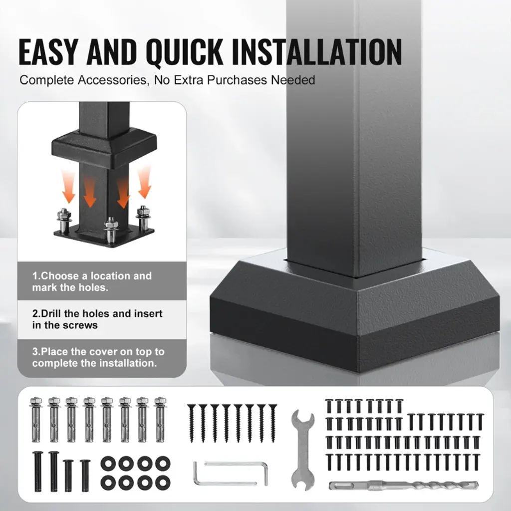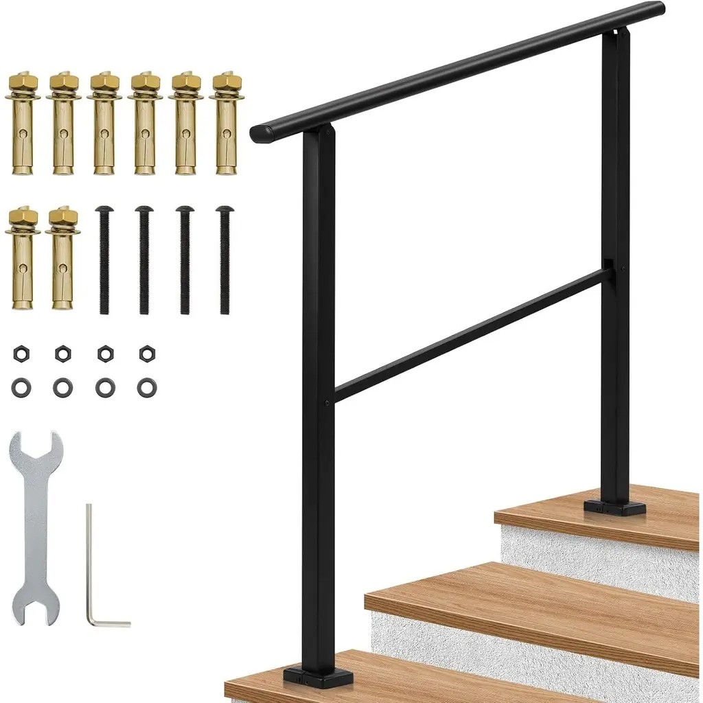 Feature: 220 lbs Robust Load Capacity: This stair handrail is built for durability, providing lasting safety for both elderly individuals and children. Its thickened grip ensures comfort, making it safe and easy to use for everyone, including pregnant women and the elderly. IMPORTANT TIPS:Before purchasing, please measure the maximum center distance and height difference of your stairs to ensure they match the handrail dimensions. Otherwise, the handrail may not be installable!!!!!! Suitable for 5-6 Step Levels: With an adjustable angle ranging from 14 to 50 degrees, this handrail is perfect for accommodating 5-6 step levels. It is ideal for various applications such as doorsteps, garage entrances, and garden railings, ensuring a versatile fit. Easy Installation: Featuring stainless steel expansion bolts for double reinforcement, this handrail offers enhanced stability. The included manual guides you through the installation process, making it quick and straightforward. Versatile Use: Designed for outdoor staircases, this handrail can be installed on concrete, wood, tile, marble, and other solid surfaces. Its unique style complements a variety of staircase types, enhancing both function and appearance. Durable Accessories: Comes with a complete set of installation hardware—screws, nuts, expansion bolts, and metal anchors—ensuring a secure and stable installation. The comprehensive hardware set facilitates a smooth and efficient setup. Package Content 1 x Stair Handrail 2 x Pipe Plugs 1 x Open-End Wrench (10-13 mm) 2 x Allen Wrenches (4 mm) 2 x Allen Wrenches (3 mm) 1 x Drill Bit (10x150 mm) 2 x Black Lock Nuts (M6x35 mm) 2 x Black Lock Nuts (M6x45 mm) 8 x Black Hex Socket Head Screws (M6x16 mm) 20 x Black Lock Nuts (M5x15 mm) 20 x Black Hex Socket Head Screws (M5x20 mm) 8 x Colored Zinc Expansion Bolts (10x50 mm) 8 x Cross Self-Tapping Screws (M5x40 mm) 8 x Flat Washers (6 mm) 1 x User Manual