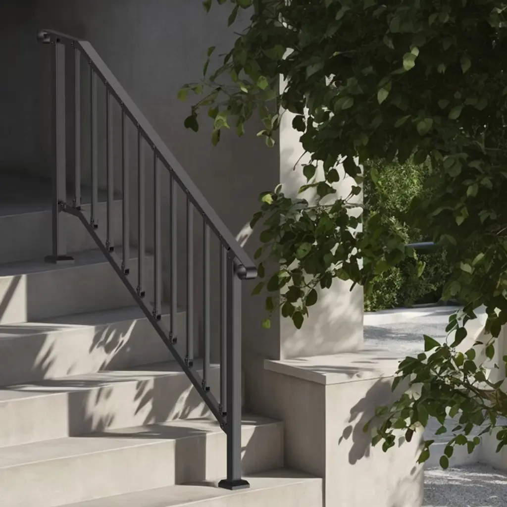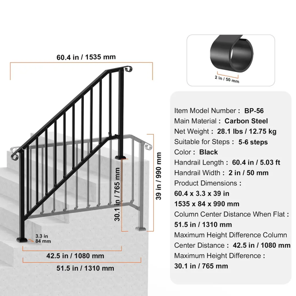 Vevor Handrails For Outdoor Steps, 5-6 Step Stair Hand Rail Kit, Transitional Carbon Steel Railings With Installation Kit, Stair Rails, Black
