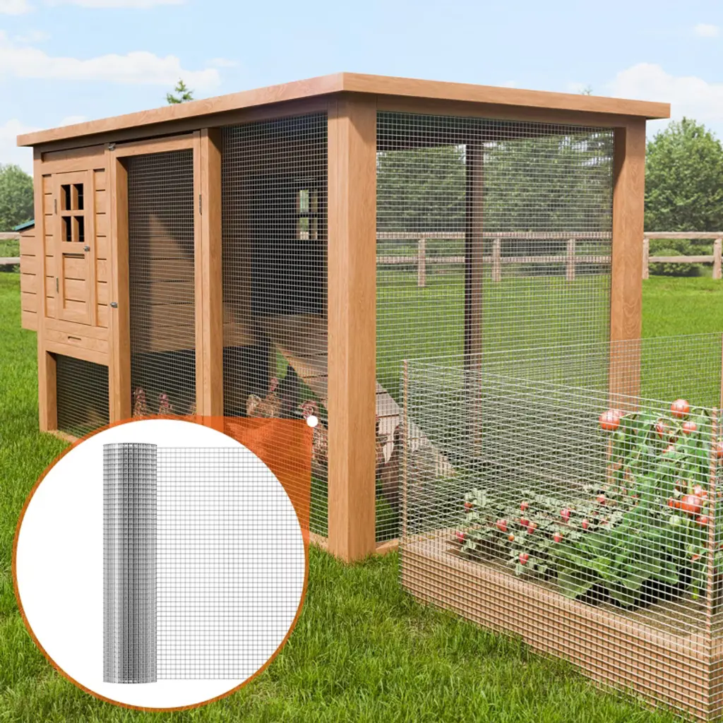 Feature: Heavy-Duty Hot-Dipped Galvanization: Our low-carbon steel hardware cloth undergoes professional hot-dipped galvanization for a uniform coating without bubbles. Pre-tested for salt spray, it ensures durable corrosion resistance, lasting through years of outdoor use without needing replacements. Robust Welded Structure: Our 24in x 25 ft hardware cloth is welded from low-carbon steel wire into a sturdy mesh structure, followed by a post-weld galvanization process. Each weld point is zinc-coated to prevent detachment, ensuring a bright, rust-proof finish even after prolonged exposure to different weather conditions. 1/2-inch Fine Mesh: Featuring narrow 1/2" mesh, even small animals find it difficult to penetrate. Perfect for safeguarding vegetable gardens from small rodents like squirrels, rabbits, raccoons, skunks, foxes, snakes, and more. Enhanced Packaging: To prevent damage during transportation, Our hardware cloth is packaged in five layers of cardboard boxes with fully covered sealing at both ends. Internally, it's wrapped with plastic film and paper, ensuring waterproof and rustproof protection. Minimize the risk of damage and ensure safe delivery! Easy to Cut and Use: Simply cut with scissors or wire cutters to create different shapes and sizes for chicken coops, garden beds, rabbit fences, hedges, drainage grid fences, flower beds, DIY projects, and more. Caution: Beware of sharp edges after cutting; always wear gloves when handling. Package Content: 1 x Roll of Hardware Cloth