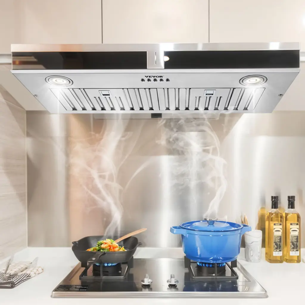 Vevor Insert Range Hood, 800cfm 3-speed, 30 Inch Stainless Steel Built-in Kitchen Vent With Push Button Control Lights Baffle Filters, Silver