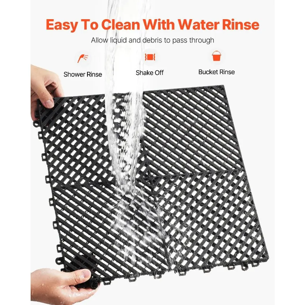 Vevor Interlocking Drainage Mat, 15.7” X 15.7” Modular Interlocking Cushion, 24 Pcs Splicing Drainage Mats, Non-slip Black Pp Drainage Floor Tile