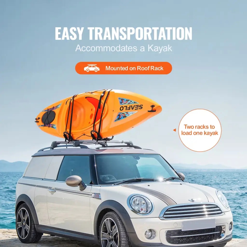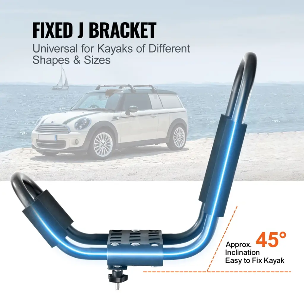 Vevor Kayak Roof Rack, 1 Pair J-bar, Soft Roof Rack, Top Mount Tie Down, Carrier For Kayak, Surf Board, Canoe, Sup, Ski Board, Mount On Car, Black