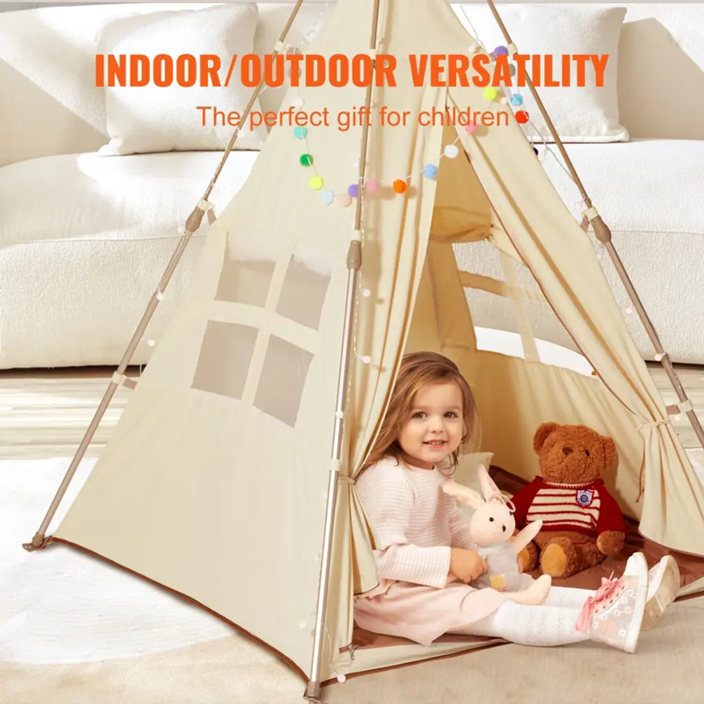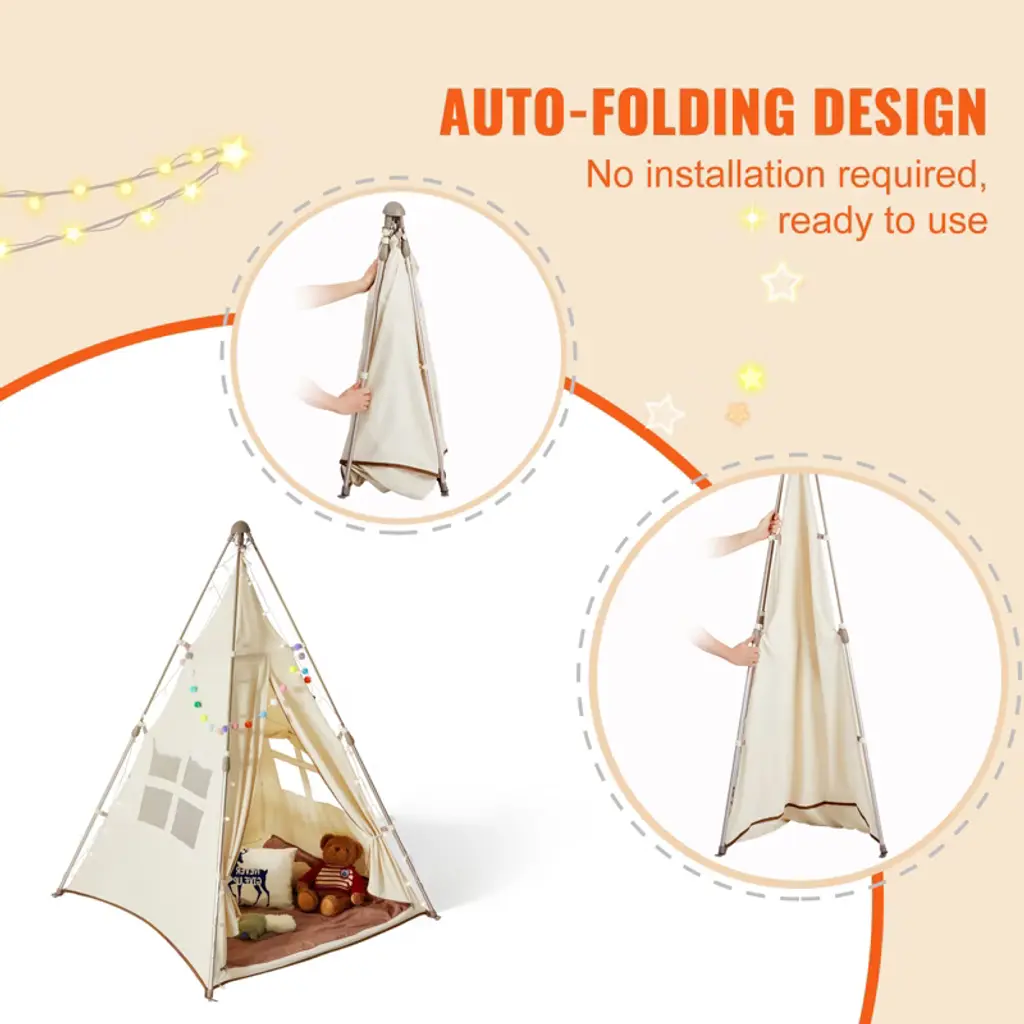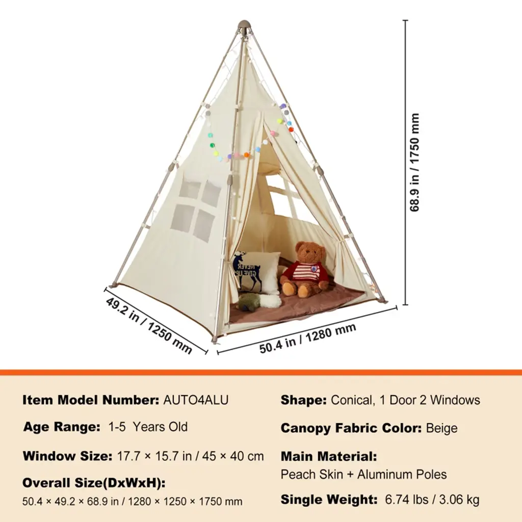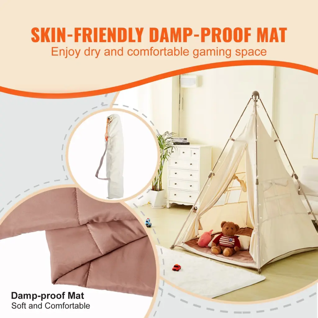 Vevor Kids Play Tent, Tent For Kids 1-5 Years Old, Tent For Kids With Windows, Foldable Toddler Tent With Mat And Carrying Bag, Beige