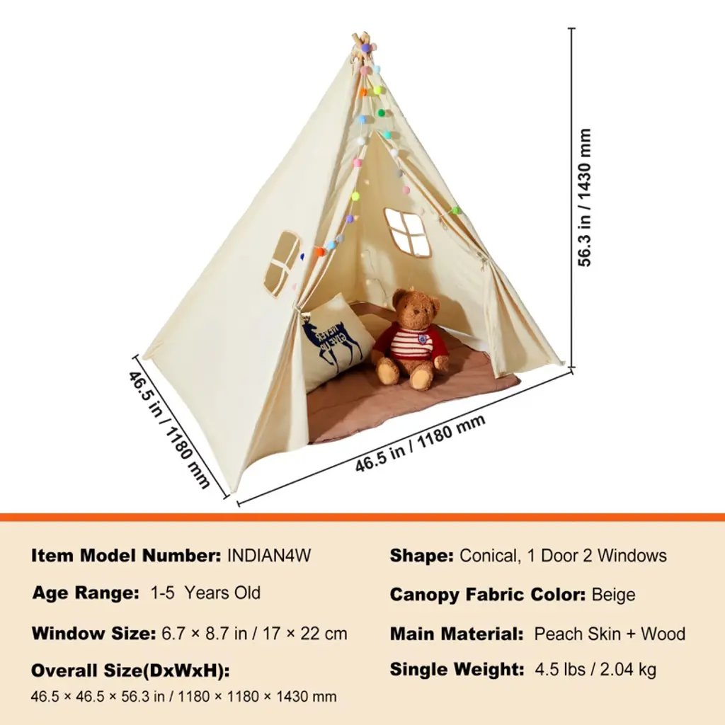 Vevor Kids Play Tent, Tent For Kids 1-5 Years Old, Tent For Kids With Windows, Toddler Tent With Mat And Plush Decorative Balls, Beige