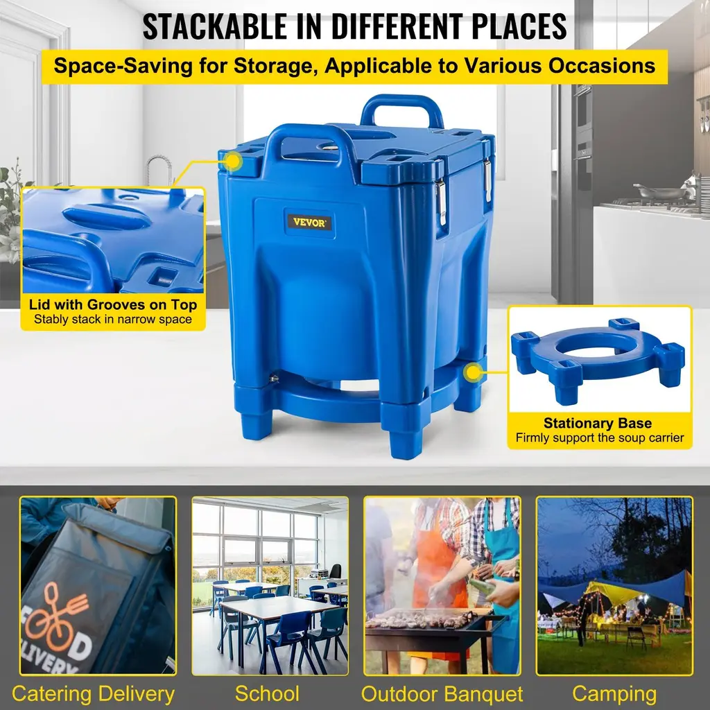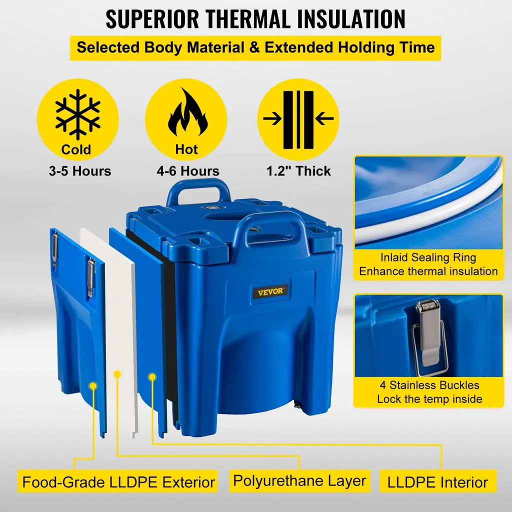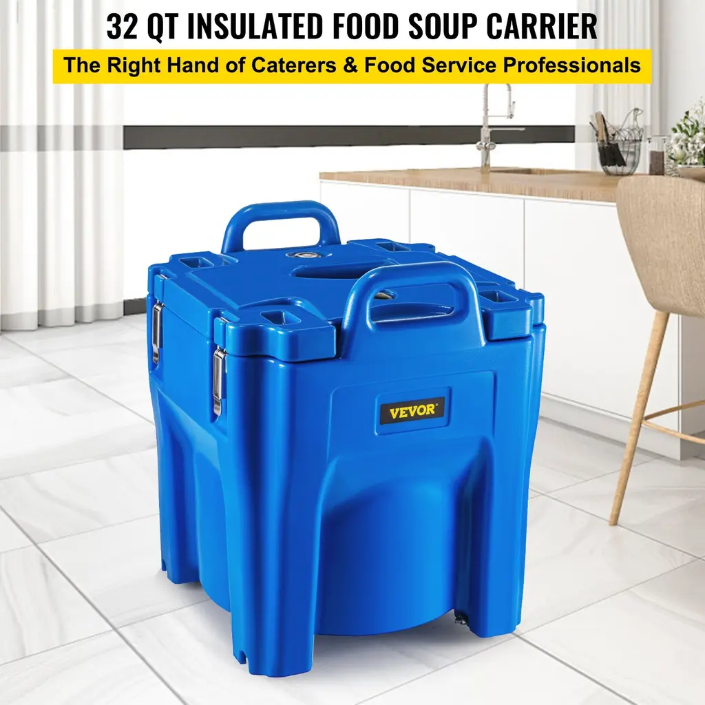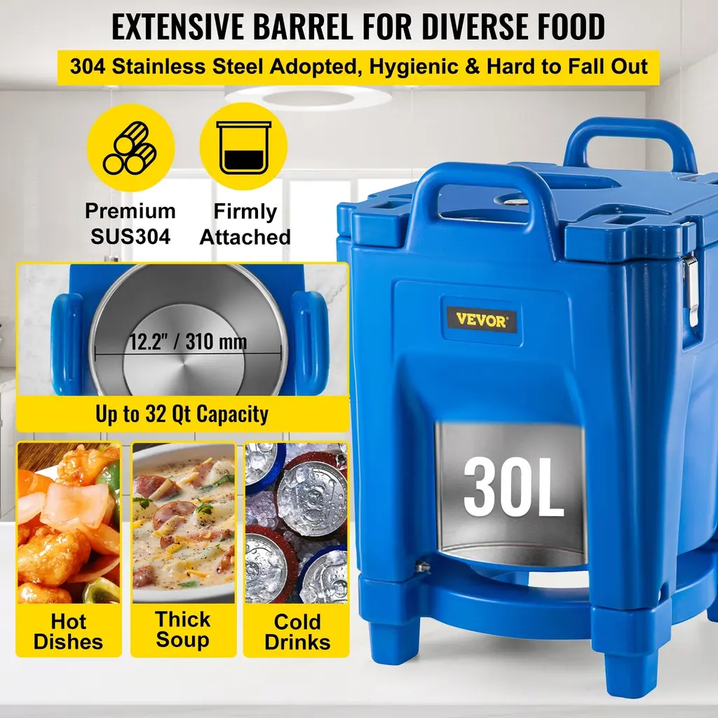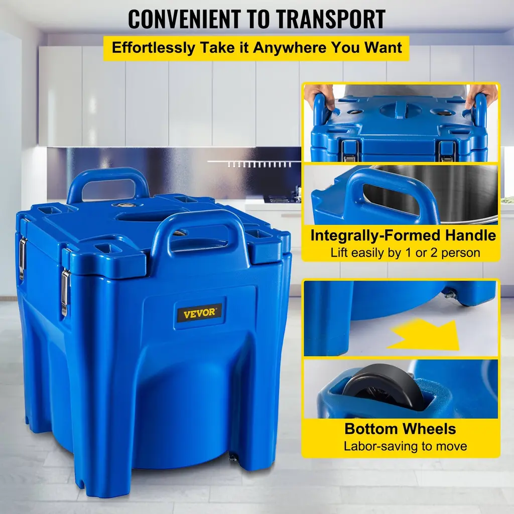 Vevor Lldpe 32-109 Qt Insulated Food Pan Carrier With Double Buckles For Restaurant Canteen - 30l - Blue+stationary Base
