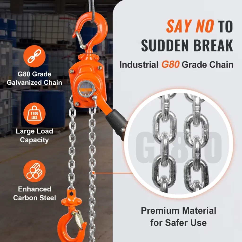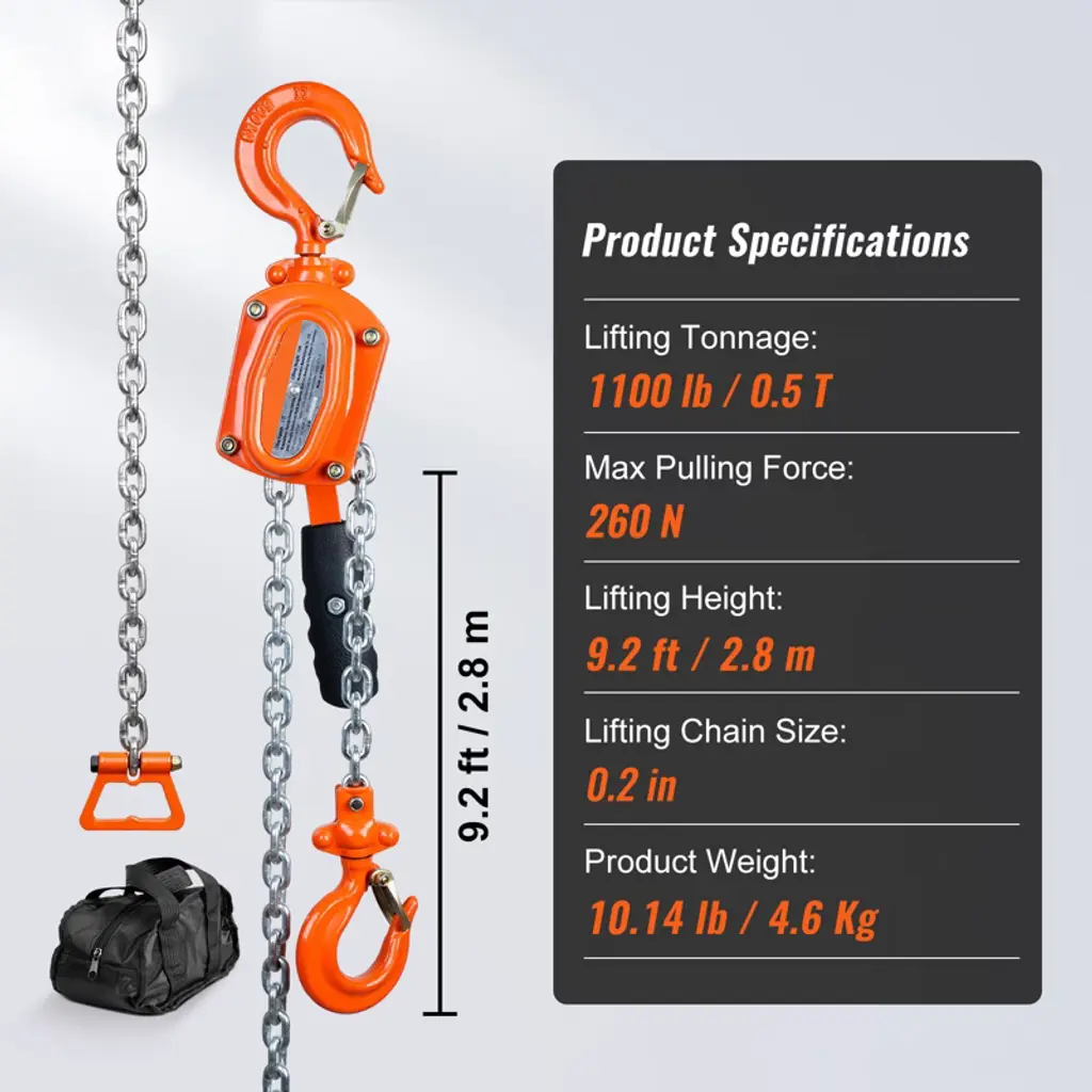 Vevor Manual Lever Chain Hoist, 1/2 Ton 1100 Lbs Capacity 10 Ft Come Along, G80 Galvanized Carbon Steel With Weston Double-pawl Brake, Orange