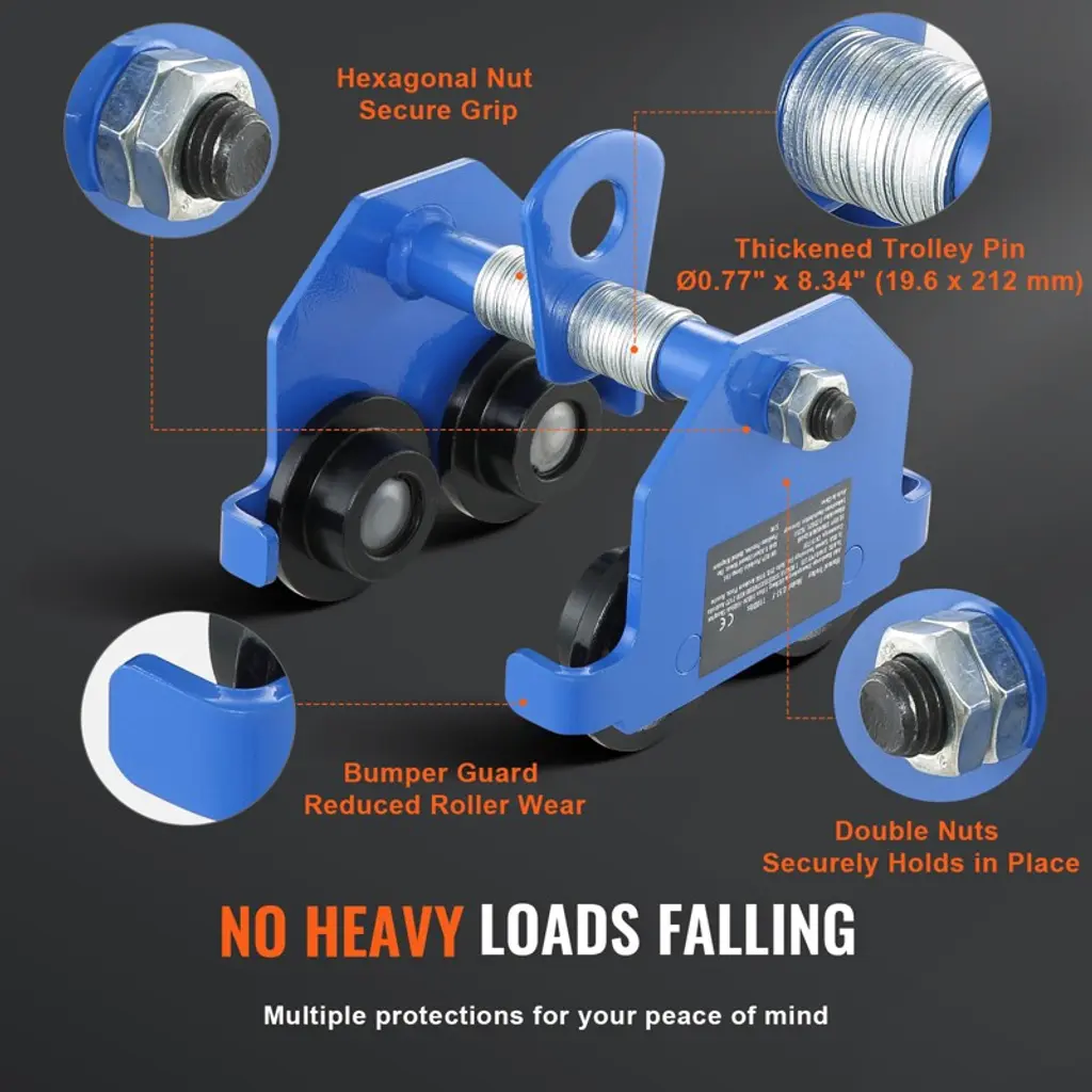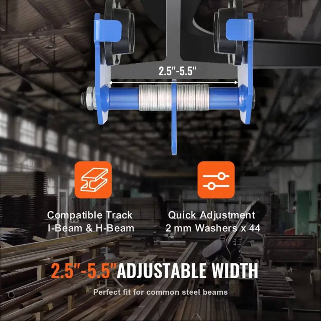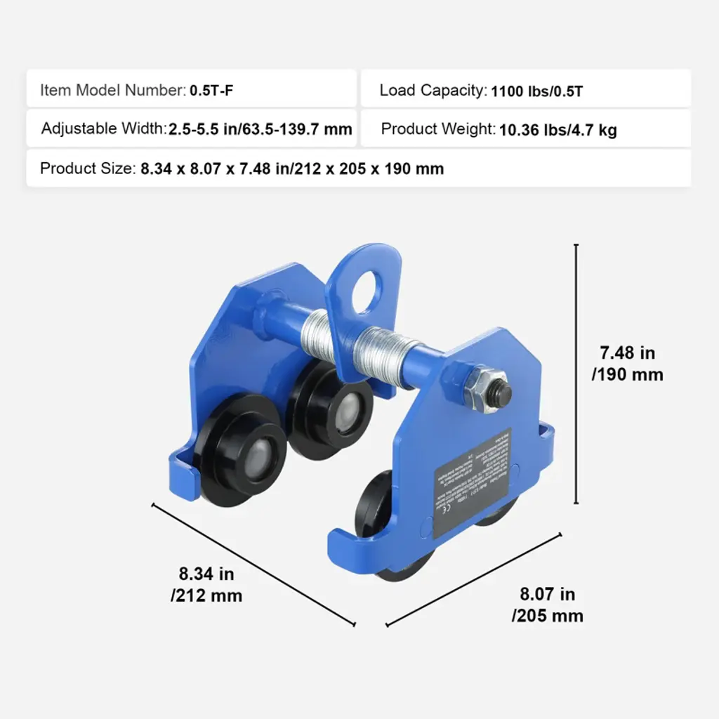 Vevor Manual Trolley, 1100 Lbs/0.5 Ton Load Capacity Push Beam Trolley With Dual Wheels, Adjustable For I-beam Flange Width 2.5" To 5.5"