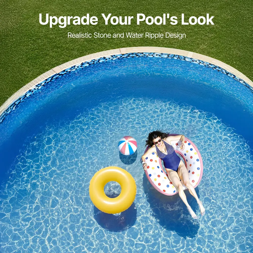 Feature: Fit for 30ft Pools: Our pool liner is specially measured to fit 30-ft round pools with a flat bottom and wall height of up to 52 inches, ensuring an exact and secure fit for your pool. Above-Ground Pool Liner: This vinyl pool liner adds a soft cushioning layer to the bottom of your pool, providing a smooth, comfortable surface for walking. It helps protect your feet and elbows while reducing the risk of injury, making it a pleasant experience for all. Easy Installation & Maintenance: Installing this swimming pool liner is simple and hassle-free, whether you choose to use J-hooks or standard beading installation. (Note: additional accessories are needed for installation. Before use, it’s recommended to air dry the liner at room temperature for several hours to restore its softness.) High-Quality & Durable Construction: Made from strong, smooth vinyl, this avove ground pool liner offers superior protection for your pool. It is puncture-resistant, leak-proof, and designed to withstand chlorine, sun rays, and cleaners, ensuring a long-lasting product life. Versatile & Multi-Functional: Not just for pools, this unibeaded pool liner can also be used as a waterproof cover for boats, outdoor furniture, or as a sunshade for your patio. The possibilities are endless—let your creativity explore new uses! Package Content 2 × Leak Repair Patches 1 × User Manual