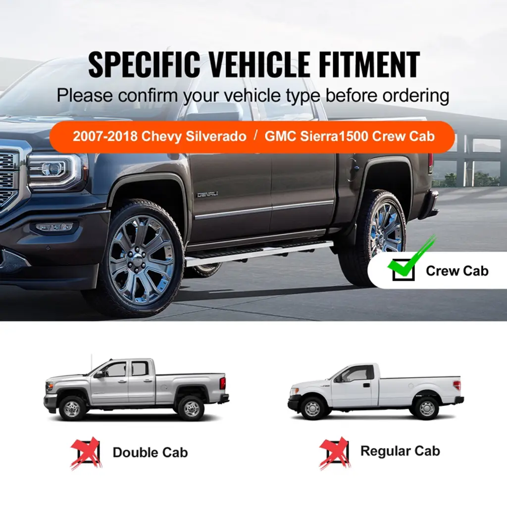 Vevor Running Boards, 6" Step Bars Compatible With 2007-2018 Chevy Silverado/gmc Sierra 1500 Crew Cab/2019 2500hd 3500hd 1500 Ld, 2 Piece,black