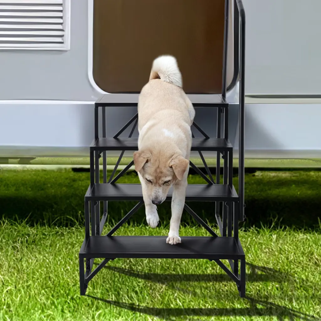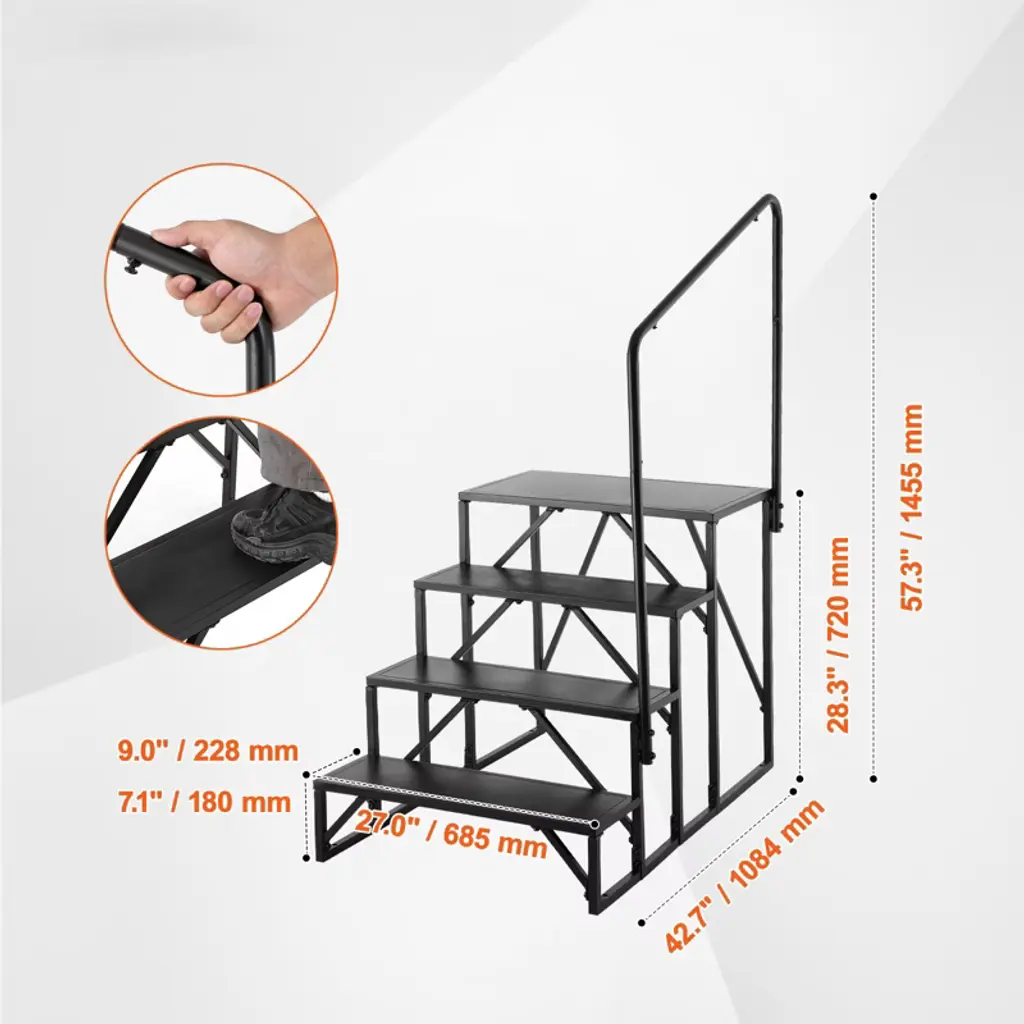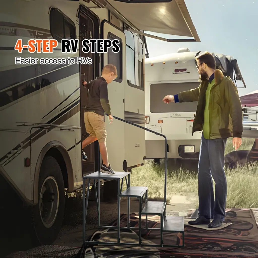 Vevor Rv Steps, 4-step Rv Stairs, 440 Lbs Load Capacity, Thickened Carbon Steel, With Handrail, Non-slip Steps For Safe Entry And Exit, Black
