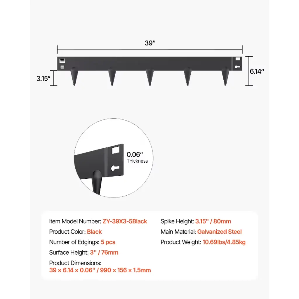 Vevor Steel Landscape Edging, 5 Packs 39 X 3 In Rust-resistant Metal Landscape Edging, Bendable Garden Edging Border, Heavy Duty Lawn Edging, Black
