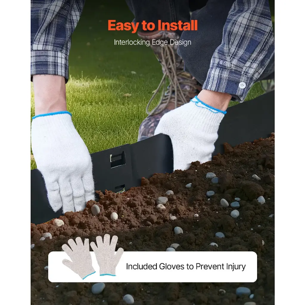 Feature: Long-Lasting Galvanized Steel: Made from high-quality galvanized steel with a rust-resistant coating, this metal landscape edging built to resist fading, cracking, and rusting. It withstands all weather conditions, providing long-term durability for any outdoor environment. Flexible & Bendable: This yard edging is both flexible and durable. It can be easily bent to suit any shape—whether your garden is square, round, or irregular—without causing any damage, offering a tailored fit for your landscape design. Easy Installation: Installing this metal is a breeze! Simply interlock the pieces at the edges for a quick and easy setup that saves you time and effort. (Note: We recommend wearing gloves during installation. Versatile for Multiple Applications: Ideal for creating garden fences, defining borders along roadsides, or separating various outdoor zones. This galvanized steel garden edging not only adds a neat structure to your outdoor space but also serves as a decorative element to enhance your landscape’s aesthetic appeal. What You’ll Receive: Each set includes 5 metal flowerbed edging borders, 1 pair of installation glove, and 1 instruction manual. The extended spiked design ensures easy installation by helping the barrier penetrate the ground with less effort. Spend more time enjoying your garden and less time maintaining it! Package Content 1 x Instruction Manual 5 x Metal Edgings 1 x Pair of Gloves