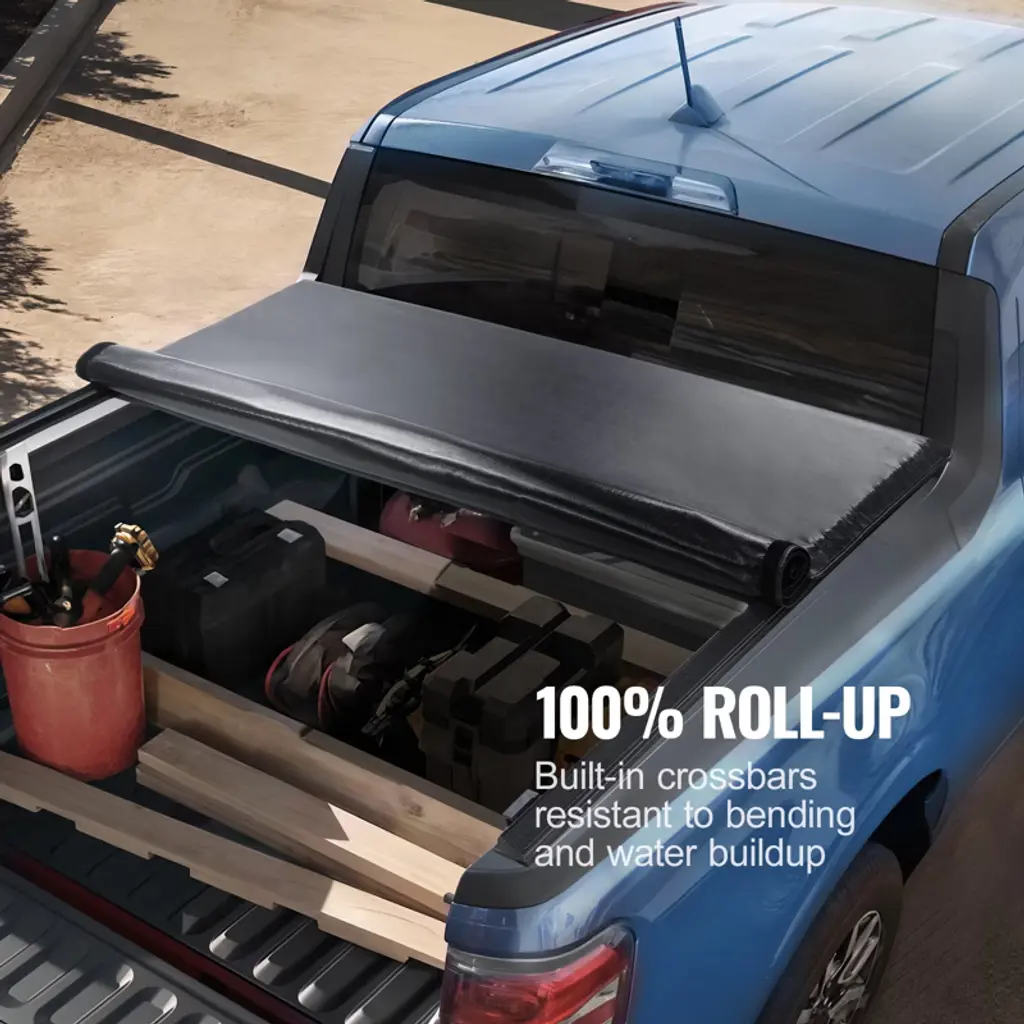 Feature: Custom-fit: This roll-up truck bed tonneau cover is specifically designed for 2009-2024 Ford F-150 Styleside Beds, precisely fitting the 5.5 x 5.4 ft (1704 x 1656mm) bed dimensions. It comes with complete accessories for precise and quick installation. Note: Please measure your truck bed dimensions before purchase to ensure compatibility. Weatherproof: Constructed with thick and tear-resistant PVC material, it withstands high temperatures and prevents rain and snow infiltration. Equipped with waterproof foam to reduce water and debris entry into the truck bed. The interior features heavy-duty aluminum support rods, rust-resistant, sturdy, and resistant to bending, ensuring smooth unfolding without water accumulation. Unobstructed Roll-up: The soft PVC material allows for quick rolling up or smooth unfolding. After rolling up, it can be securely fastened with safety buckles, ensuring convenient access to various items. No Impact on High-Speed Driving: Utilizing aerodynamics and lightweight design, it effectively reduces wind resistance, allowing you to drive freely without worrying about increased fuel consumption. It remains noise-free even on rough roads or at high speeds. Upgraded Anti-loosening Screw Clamps: Utilizing clamp installation without the need for drilling, the clamps feature anti-loosening screws for a secure grip, preventing detachment. Equipped with latch locking mechanisms, ensuring the cover remains tightly secured and safe, unable to open or detach when the tailgate is closed. Package Content: 1 x Truck Bed Cover 1 x Hexagonal Wrench (4mm) 6 x Soft Roll Clamps 6 x Foam Pads 1 x Waterproof Foam 1 x Special Foam (1.7m) 2 x Side Bars 2 x M5*15 Hexagonal Screws 2 x M5 Nuts 1 x Instruction Manual