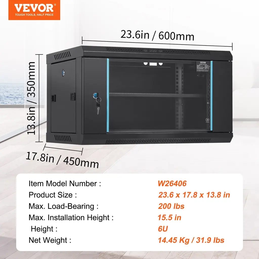 Vevor Wall Mount Network 15.5'' Deep Server Cabinet Server Rack Cabinet Enclosure - 6U