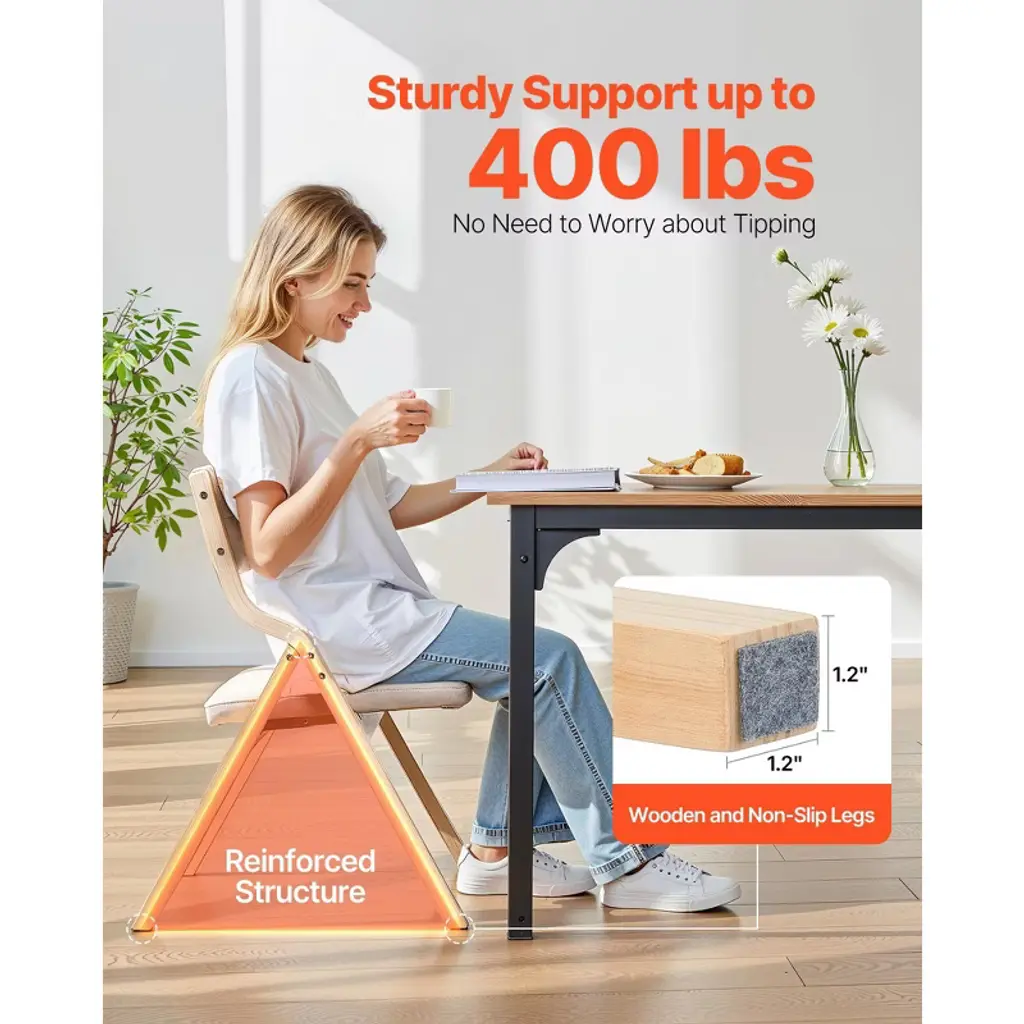 Feature: Reliable and Sturdy: The frame of the folding chair is made from high-quality bent wood, supporting up to 400 lbs / 180 kg. The anti-slip feet and triangular wood frame provide excellent stability and avoid tipping. Comfortable Seating: The seat cushion and backrest feature high-density foam support, alleviating pressure on the hips and back. Experience optimal support for a comfortable feeling while reading, resting, or dining. The tech fabric is scratch-resistant, skin-friendly, and breathable. Foldable Design: Easy to carry and compact when folded. The folding cushion chair requires no assembly and can be quickly unfolded or folded back. When not in use, it can be easily stored in a corner, under a bed, or in your vehicle. Extra-Large Seat Cushion: The oversized seat of the dining folding chairs provide unmatched comfort and extra space. It accommodates various body types, providing the most comfortable sitting posture. 2-Piece Set: A modern wooden folding chair set that fits a variety of home or party styles. It can be used as a dining chair, small bistro chair, guest chair, office chair, camping chair, conference chair, or garden chair. It's the ideal seating solution for event planners. Package Content: 2 x Folding Chairs 2 x Hex Wrenches 1 x Screws 1 x Nuts 10 x Non-slip Foot Pads 1 x Instruction Manual