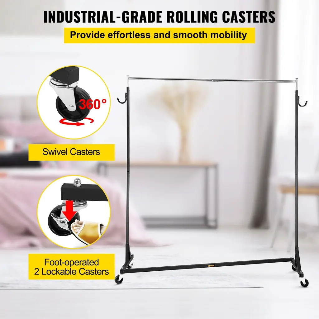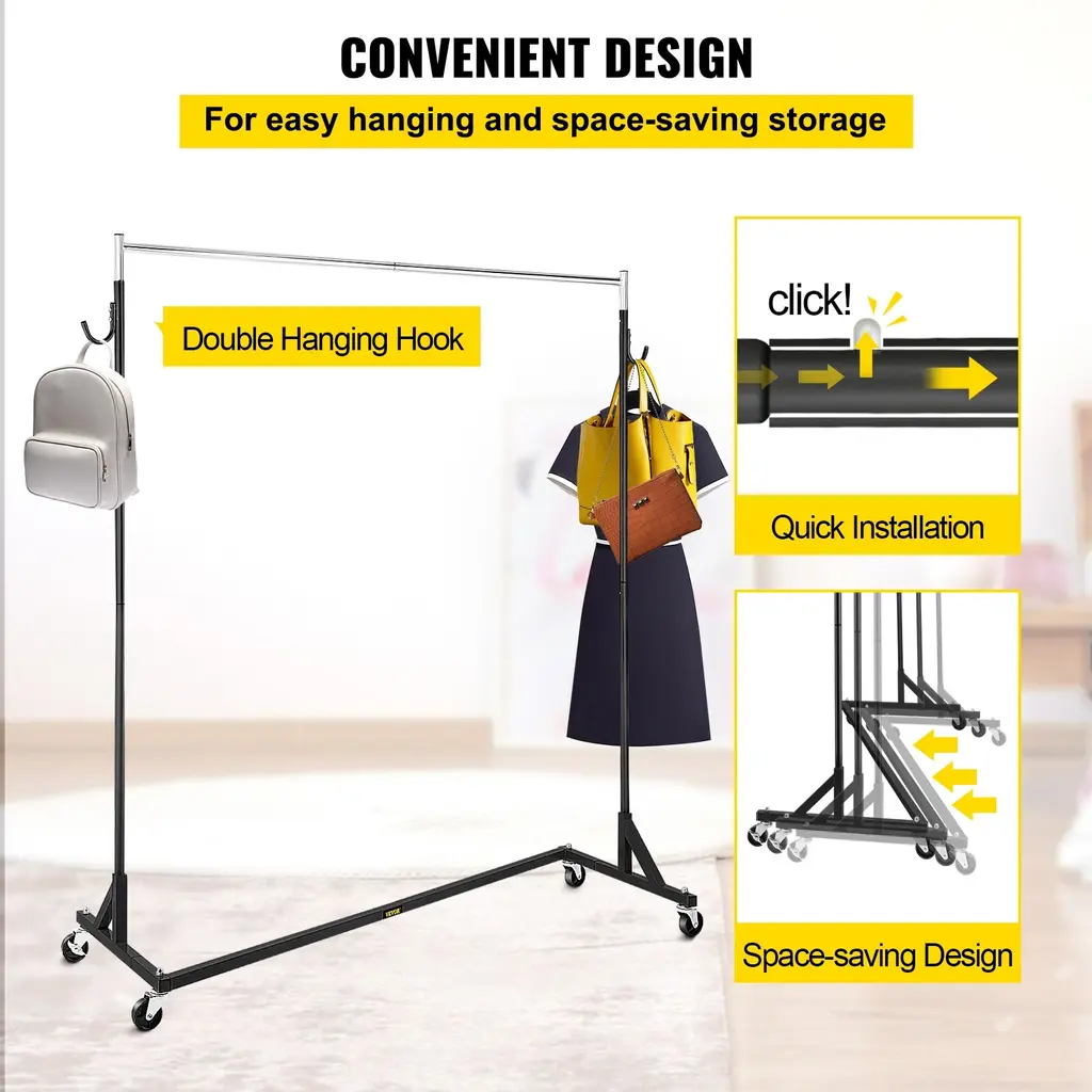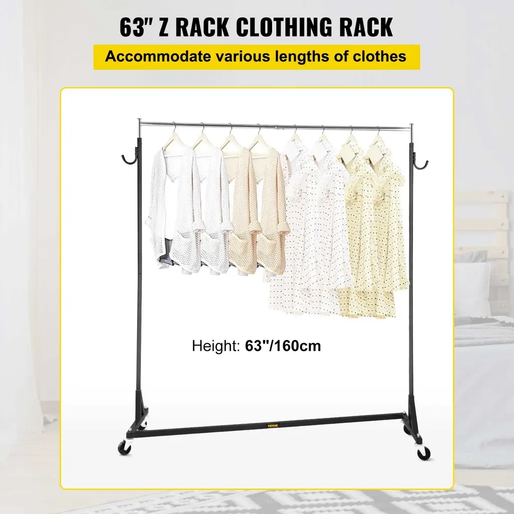 Vevor Z-Truck Commercial Sturdy Steel Height Adjustable Garment Rack With Lockable Casters For Home Store Display - 60*160*160in - Black