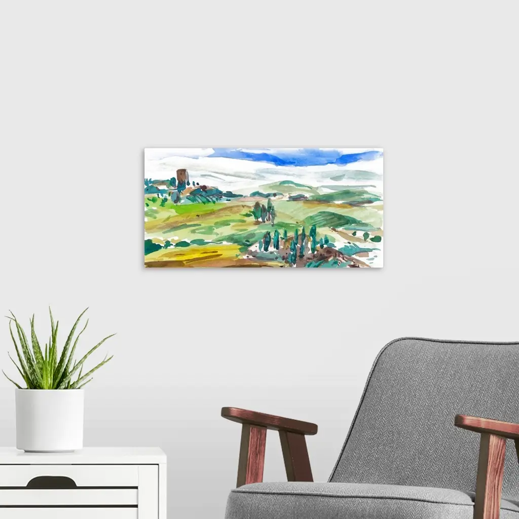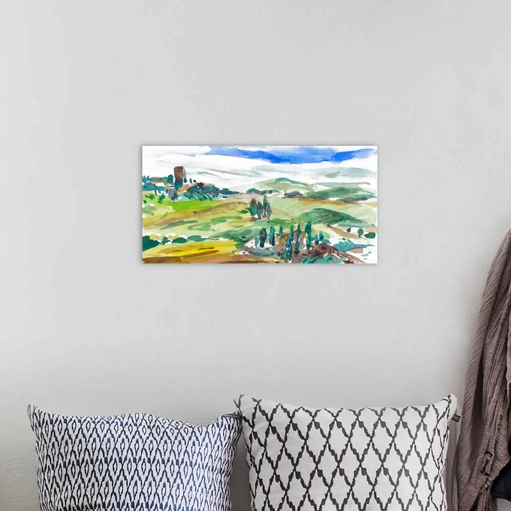 Vibrant Tuscan Landscape I wall art for home and office decor. Discover canvas art prints, photos, mural, big canvas art and framed wall art in GreatBigCanvas.com's varied collections.