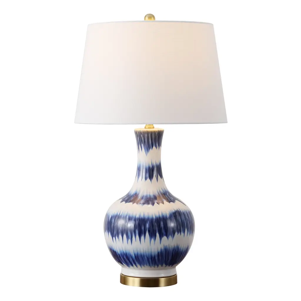 Fired Crackle Porcelain. Antique Brass Mounting. . 5.35W X 5.35D X 31H