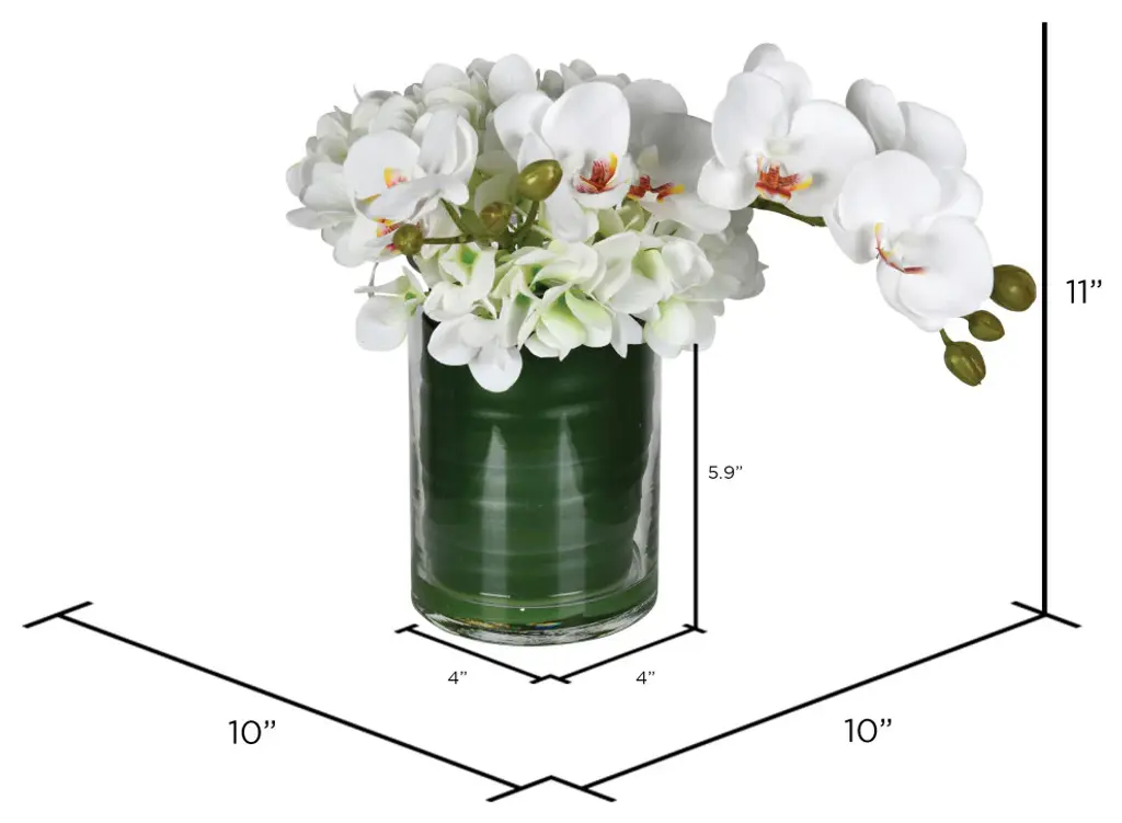 Vickerman 11" Artificial White Orchid In Glass Pot. This Beautiful White Orchid Arrangement comes in a Decorative Glass Pot