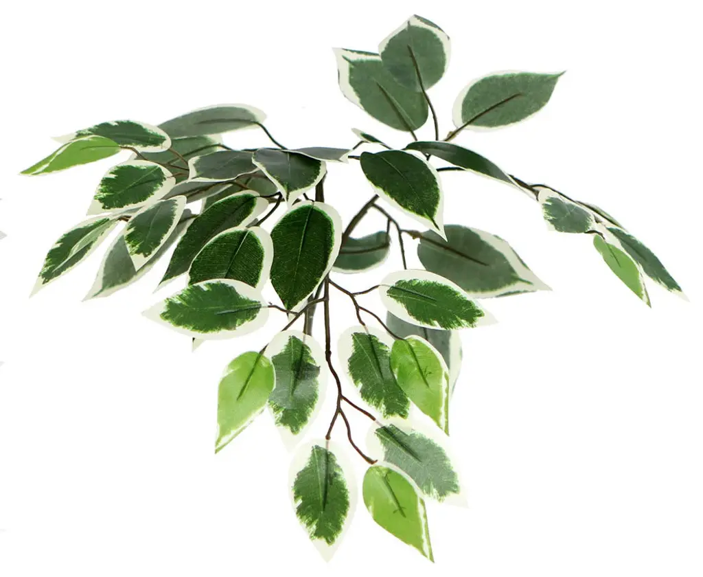 Vickerman 6'' Artificial Variegated Ficus Tree features a hardwood trunk and comes in a black plastic insertable pot, making this tree perfect for adding to the decorative container of your choice