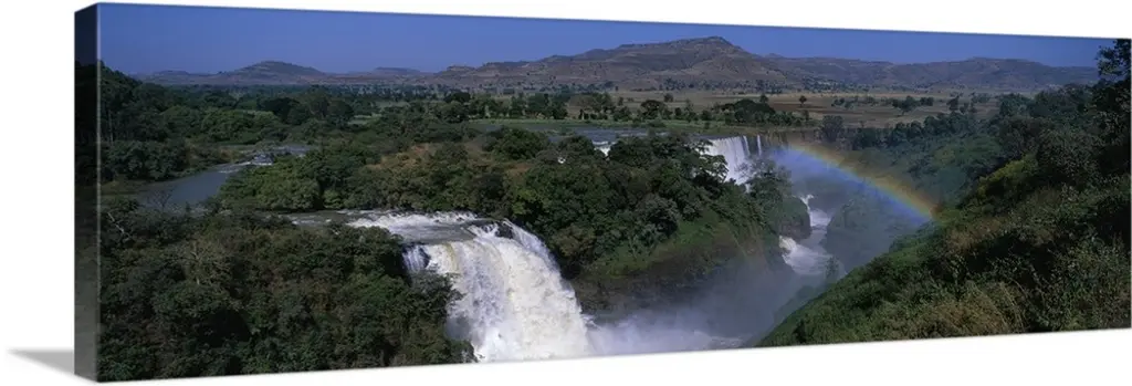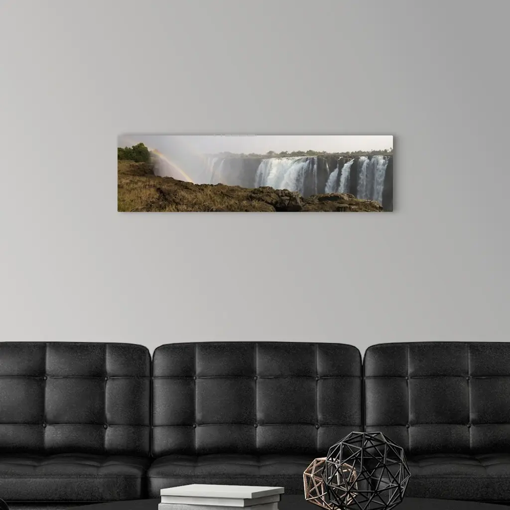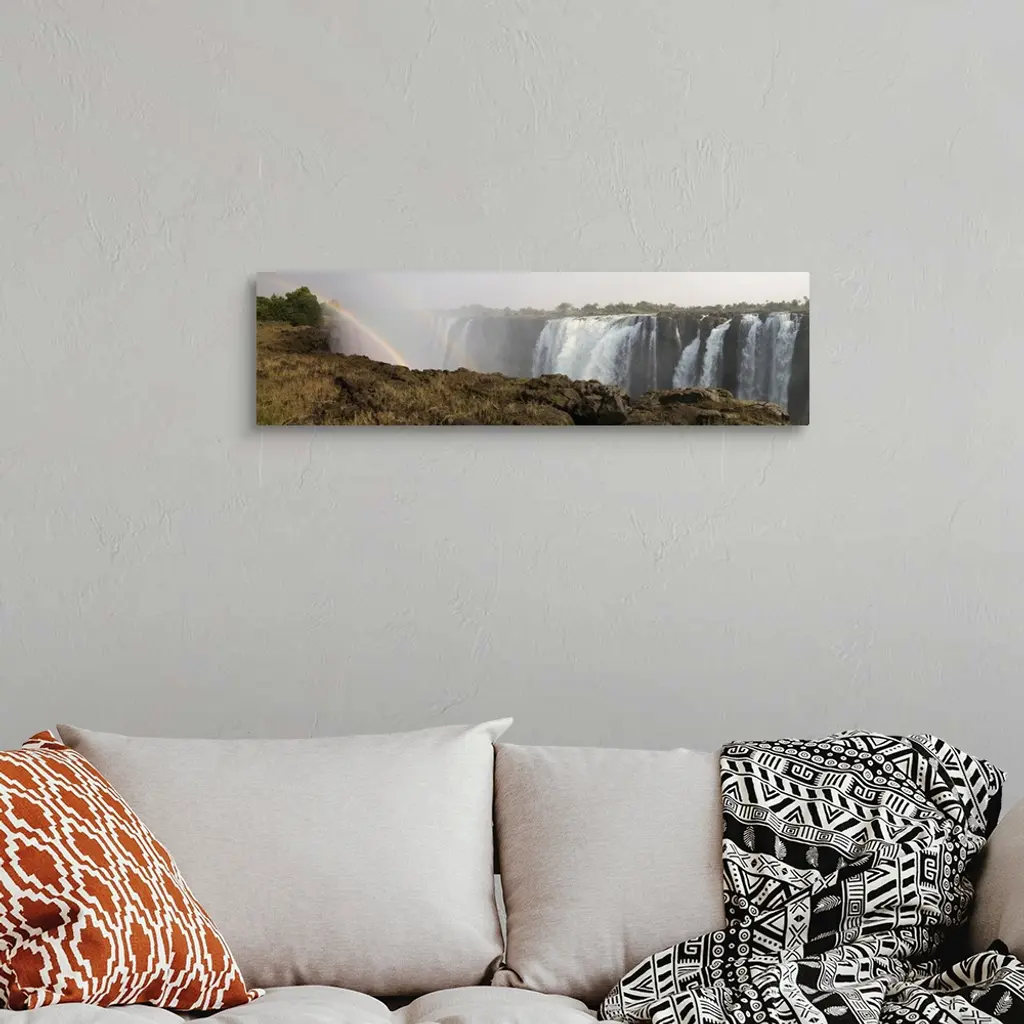 Victoria Falls with rainbow in the mist, Zambezi River, Zimbabwe.
