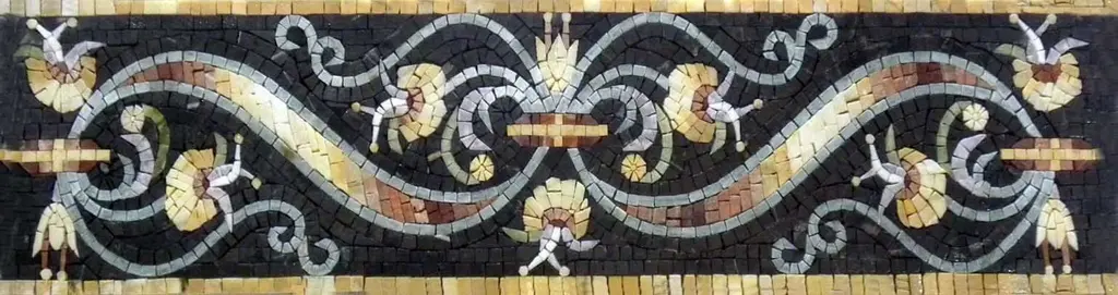Elevate your interior decor with the Victorian Pattern Mosaic Border, a stunning addition that effortlessly blends elegance and charm. Crafted with a unique combination of dark and light hues, this tile mosaic border captivates the eye while adding a flirtatious twist to your spaces. Each piece is intricately handmade, showcasing elaborate curves and floral designs that speak to the artistry and craftsmanship behind this exquisite mosaic tile border.Perfect for framing doorways, accentuating fireplaces, or creating a stunning focal point in your kitchen or bathroom, the Victorian Pattern Mosaic Border strikes the ideal balance between vintage inspiration and contemporary appeal. Use it to enhance various surfaces, from walls to countertops, and transform ordinary spaces into extraordinary settings with a classic touch.As you incorporate this mosaic tile border into your design, you will appreciate how its detailed patterns evoke feelings of warmth and sophistication. The versatility of the Victorian design allows it to fit seamlessly into a range of decor styles, whether you lean towards traditional, eclectic, or modern aesthetics. Invest in the Victorian Pattern Mosaic Border and watch as it effortlessly elevates your home decor, creating an atmosphere of timeless elegance. Experience the beauty of handmade artistry while enhancing your interiors with this exceptional mosaic tile border that truly tells a story. Redefine your spaces and let the intricate beauty of the Victorian Pattern Mosaic Border inspire your design vision today.
