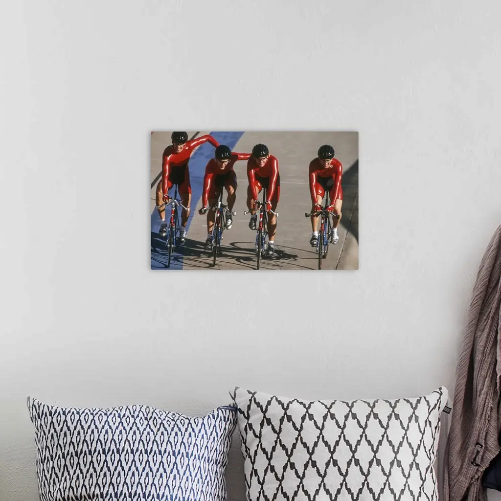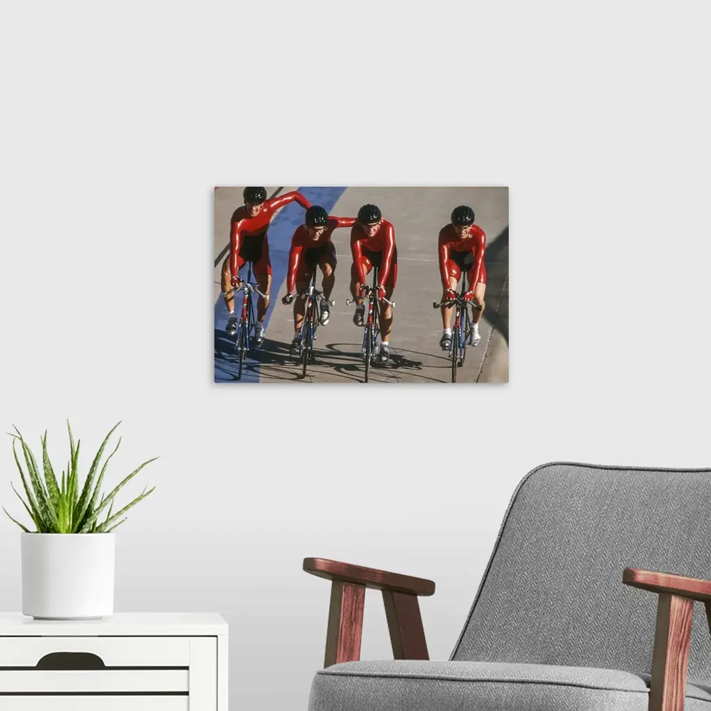 Victorious male cycling team on the velodrome wall art for home and office decor. Discover canvas art prints, photos, mural, big canvas art and framed wall art in GreatBigCanvas.com's varied collections.