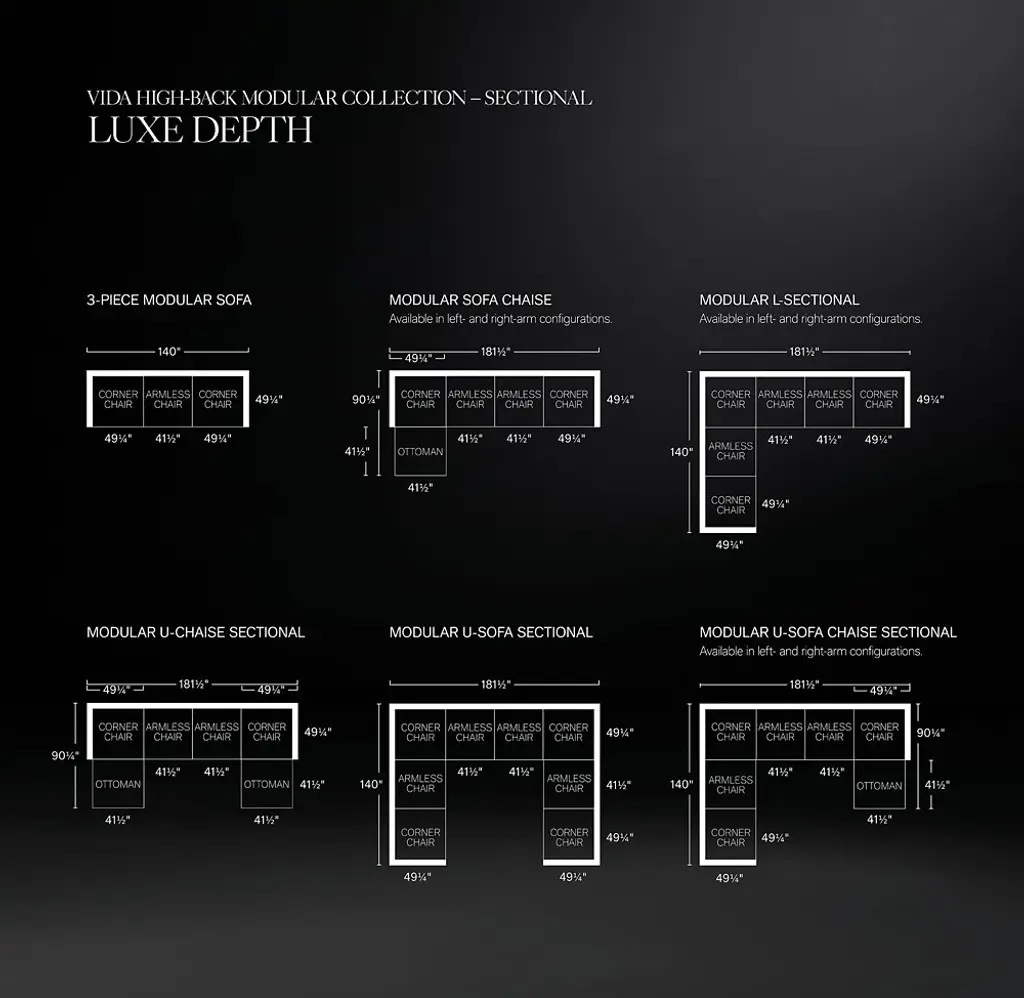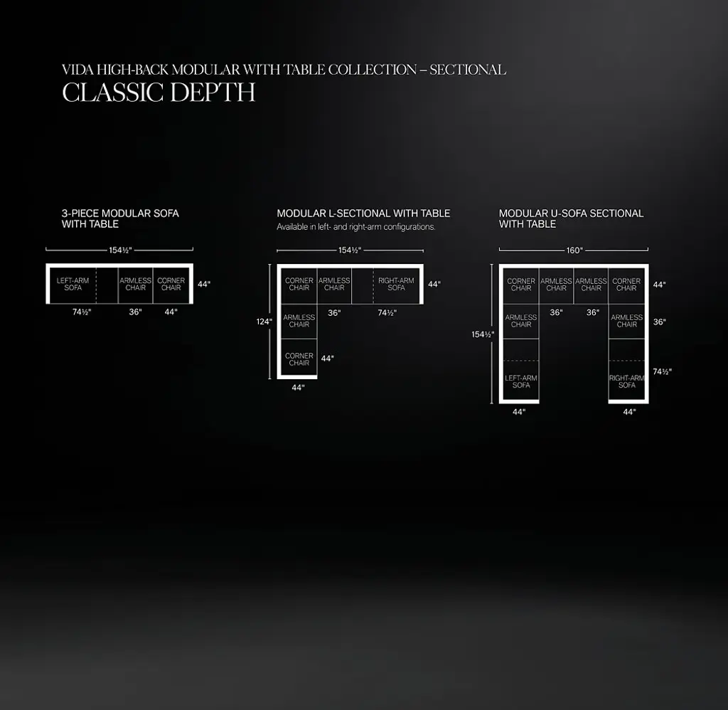 Vida High-Back Modular Right-Arm L-Sectional with Table