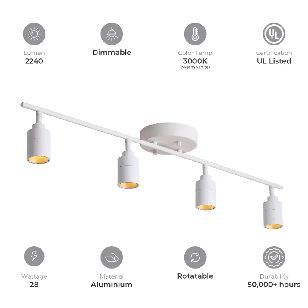 Shura is the most popular collection from VidaLite, including models ranging from 1-5 head track lights to unique swivel and cage designs, all featuring our proprietary integrated LED Shura lighting design. Each fixture is built with our statement adjustable light heads and high-quality metal finishes, which have resonated with thousands of satisfied customers over the years. These versatile designs have been featured by interior designers in residential and commercial settings alike, who pick the Shura collection for its customizable options, energy efficient LED modules, and durable build quality. Shura styles are available in Brushed Brass, Black and Brass, Matte Black, and Matte White. Each fixture uses 3000K Warm White LEDs with a wide 36° beam angle, giving you over 50,000 hours of maintenance free runtime.