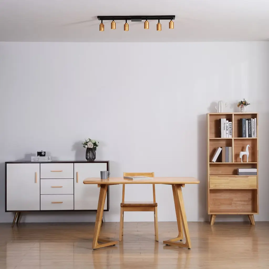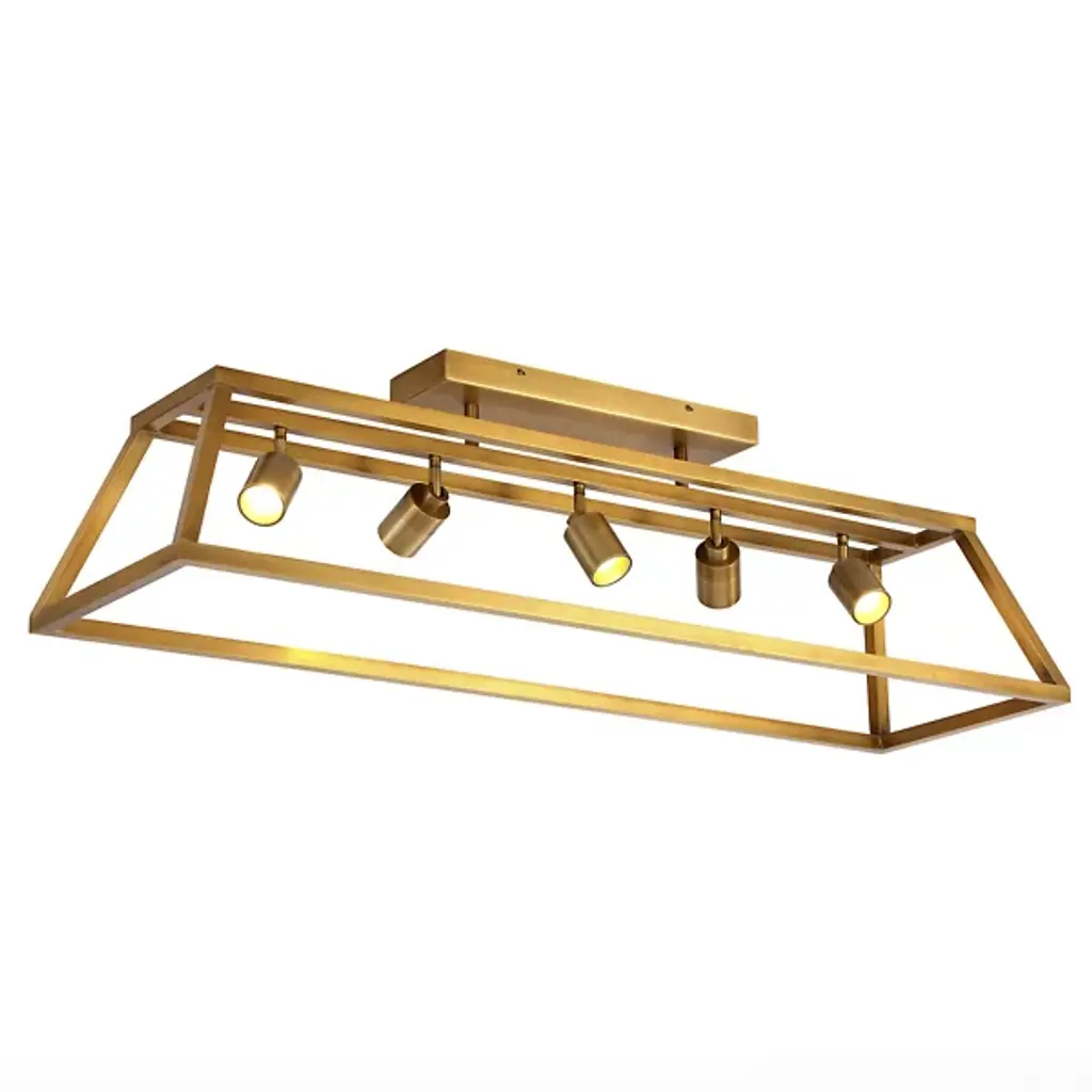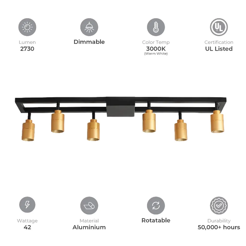 VidaLite LED Track Light is not only able to illuminate your room but it is also created to save money. Crafted from aluminum and iron, it is sturdy and eye catching. It features six dimmable spot light heads, each spotlight is brushed gold on the exterior, with a gold interior and inset LED light. The lights are situated on a square track and each head is individually adjustable in any direction to ensure you have light where it is needed most. Each LED light has 50,000 hours of maintenance free runtime so you can enjoy the light without worry of needing to change the bulb.