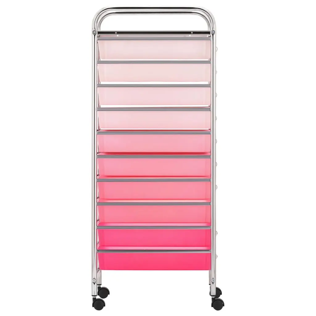 Vidaxl 10-Drawer Mobile Storage Trolley Ombre Pink Plastic