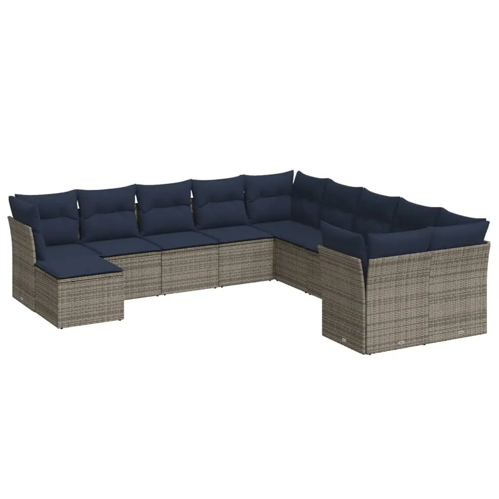 Vidaxl 10 Piece Garden Sofa Set With Cushions Grey Poly Rattan