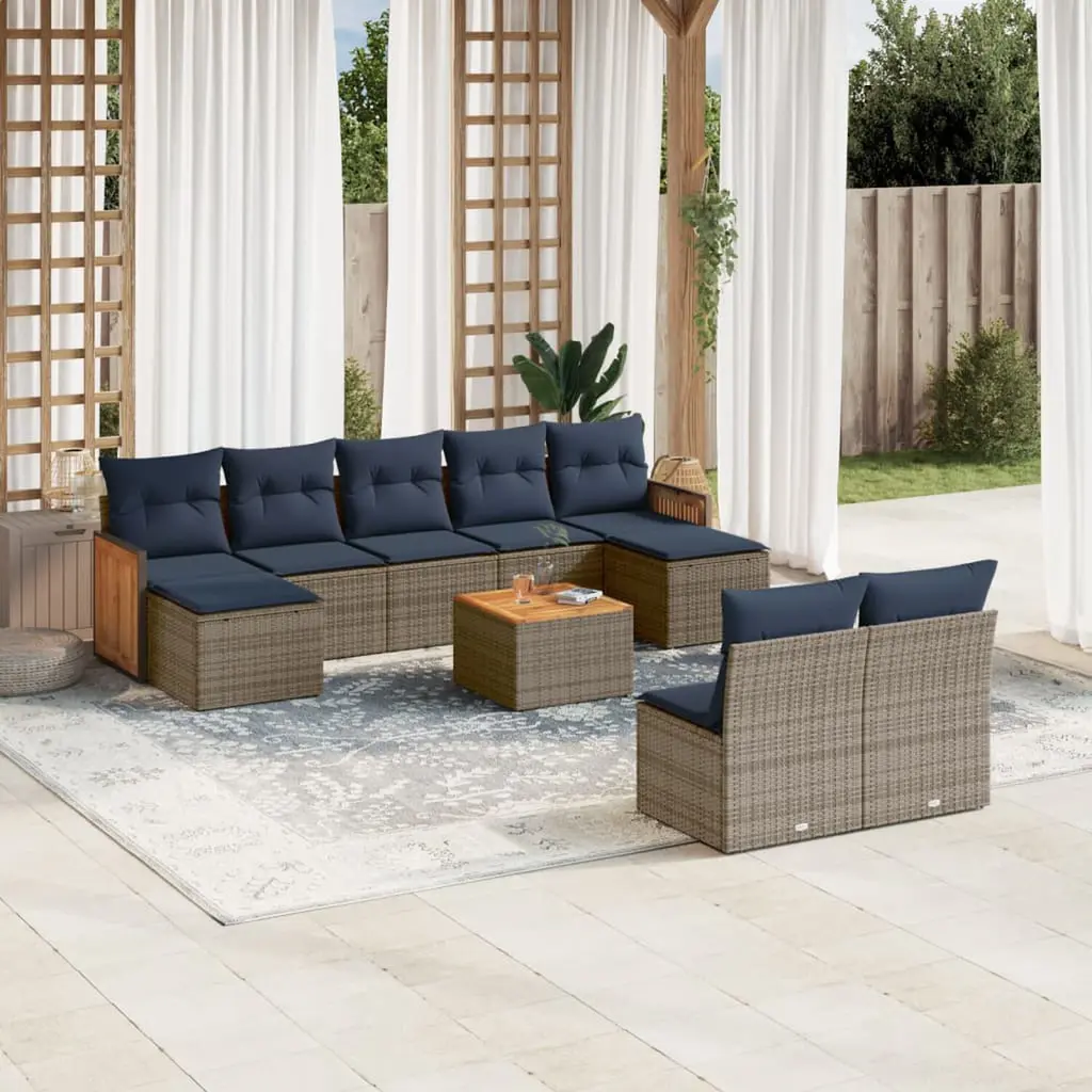 Vidaxl 10 Piece Garden Sofa Set With Cushions Grey Poly Rattan