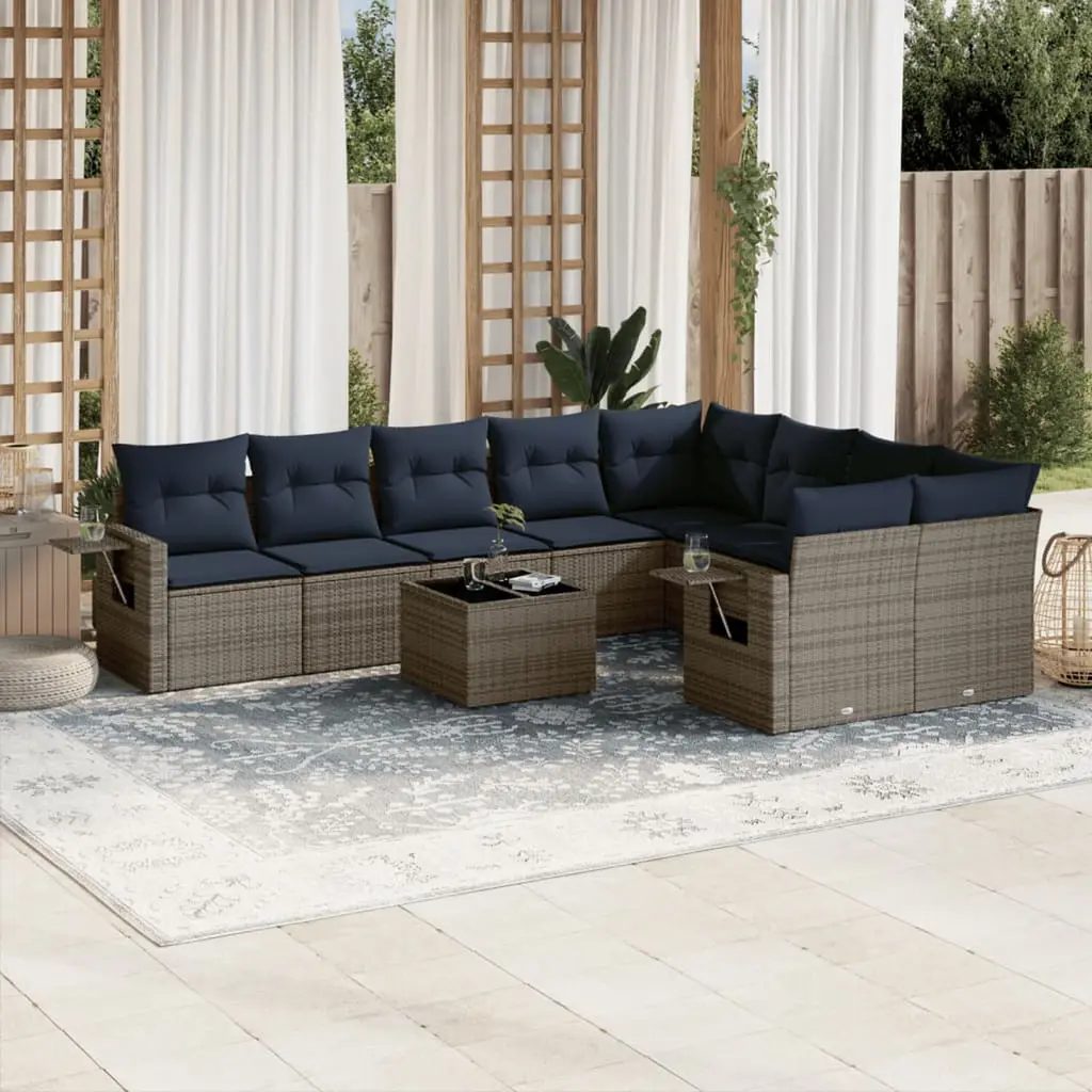 Vidaxl 10 Piece Garden Sofa Set With Cushions Grey Poly Rattan