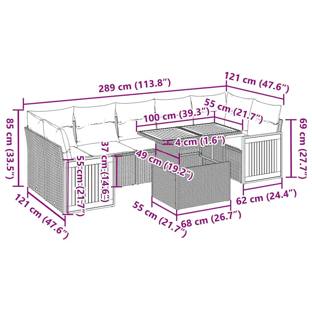 Vidaxl 10 Piece Patio Sofa Set With Cushions Black Poly Rattan Acacia