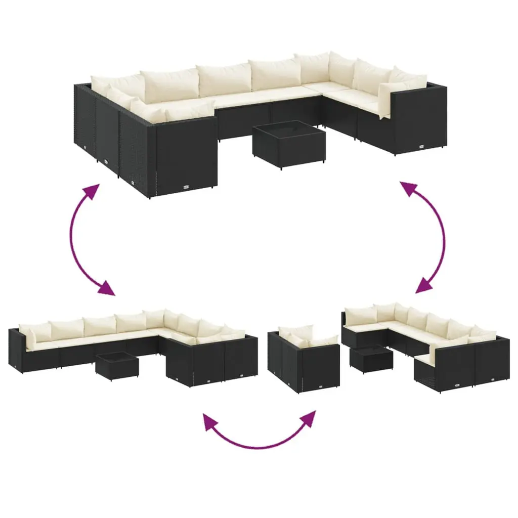Vidaxl 10 Piece Patio Sofa Set With Cushions Black Poly Rattan