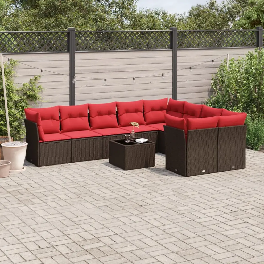 Vidaxl 10 Piece Patio Sofa Set With Cushions Brown Poly Rattan