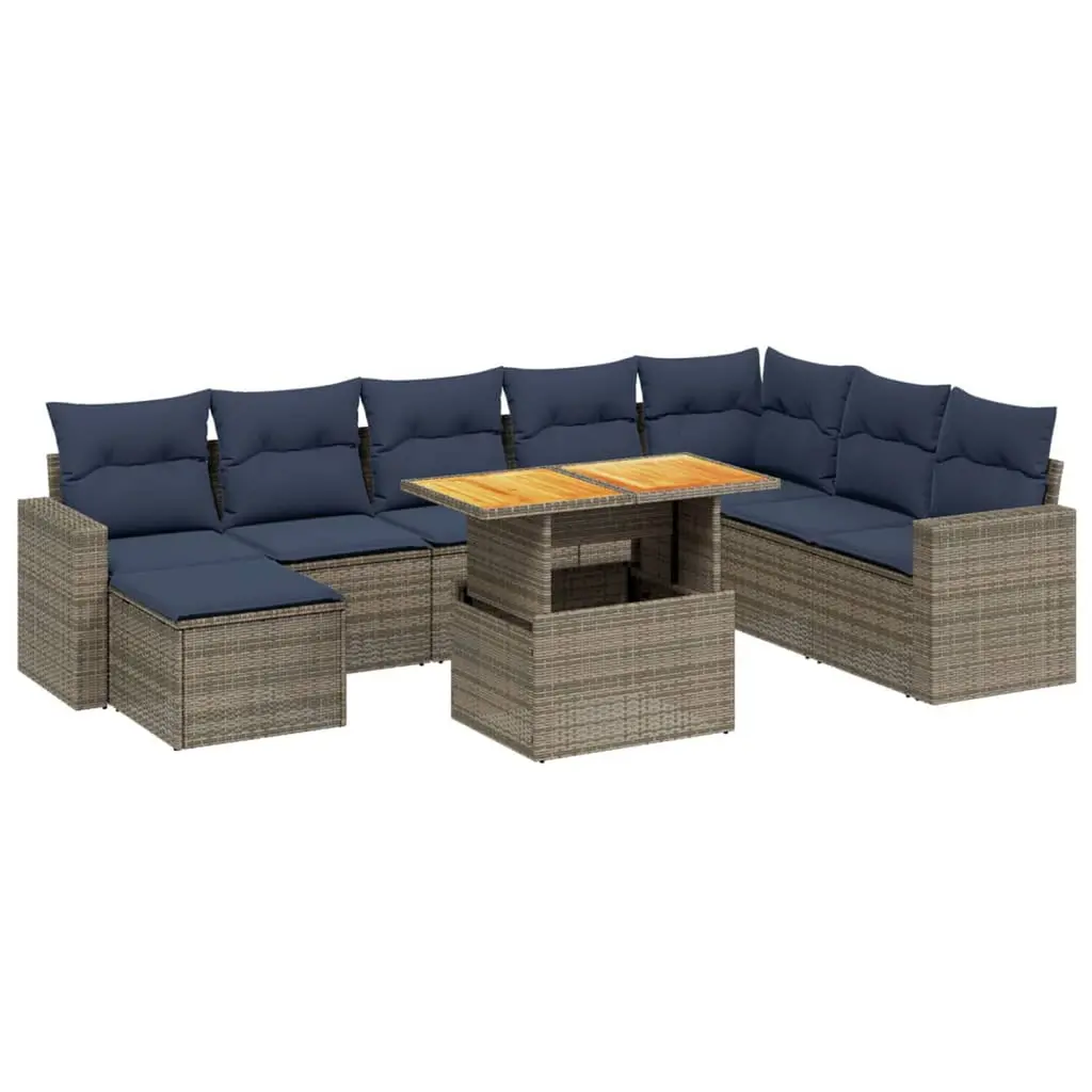 This garden sofa set is the perfect addition to your backyard, terrace, or patio, providing a comfortable and inviting space for chatting with family and friends or simply relaxing and enjoying the outdoors.Durable material: PE rattan, also known as poly rattan, is a strong, low-maintenance synthetic material that looks like natural rattan. It's lightweight, easy to clean, and commonly used for outdoor furniture due to its durability and weather-proof properties.Adjustable tabletop: The tabletop can be lifted up to make the table higher, which transforms the outdoor table from a coffee table to a dining table. It's perfect for having guests over or eating meals outside.Comfortable seat experience: This outdoor furniture, complete with thickly padded cushions, offers a comfortable seating experience.Removable and washable cover: These seat cushions feature removable covers for easy washing and maintenance.Modular design: This outdoor furniture set has a modular design, making it completely flexible and easy to move around, so you can create a customized outdoor furniture arrangement.Good to know:To make sure your outdoor furniture stays beautiful, we recommend protecting it with a waterproof cover.